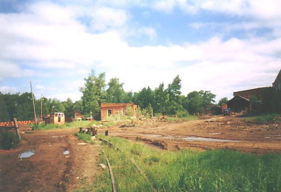 от цеха, где производится разгрузка вагонеток. Впереди — разграбленный