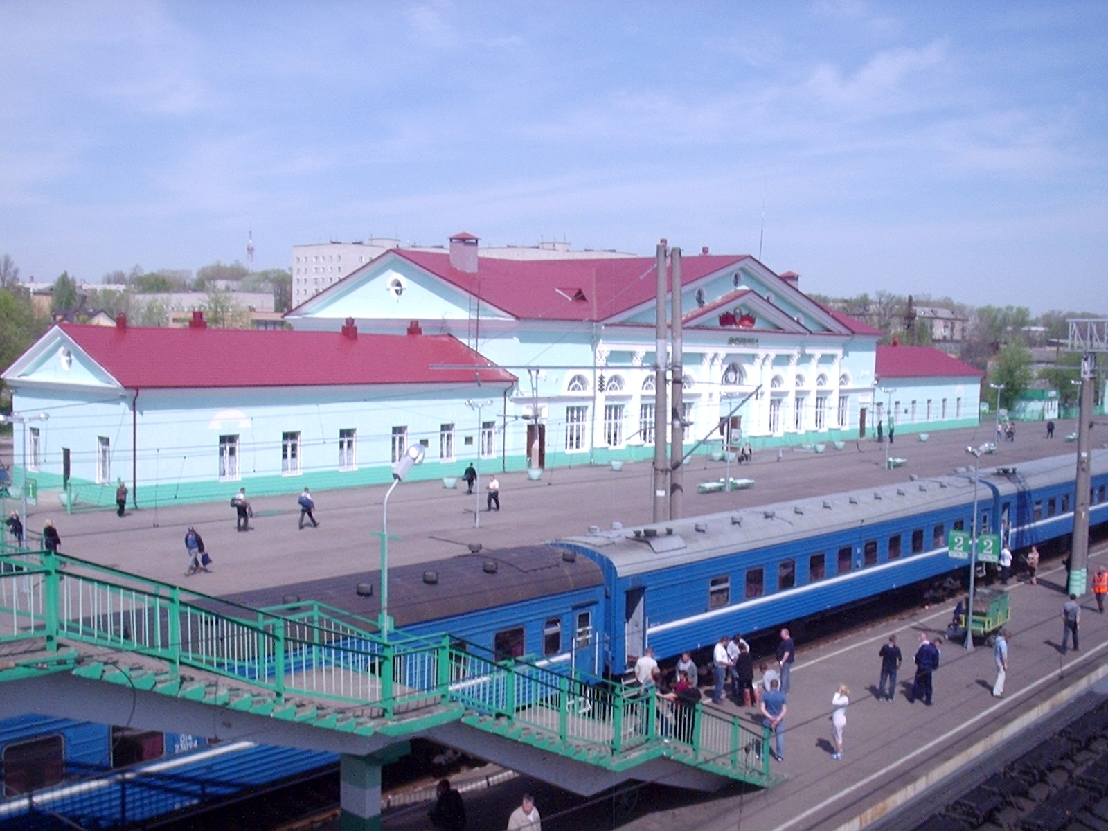 Вокзал на станции Смоленск-Центральный. Вид с переходного моста в западном направлении.