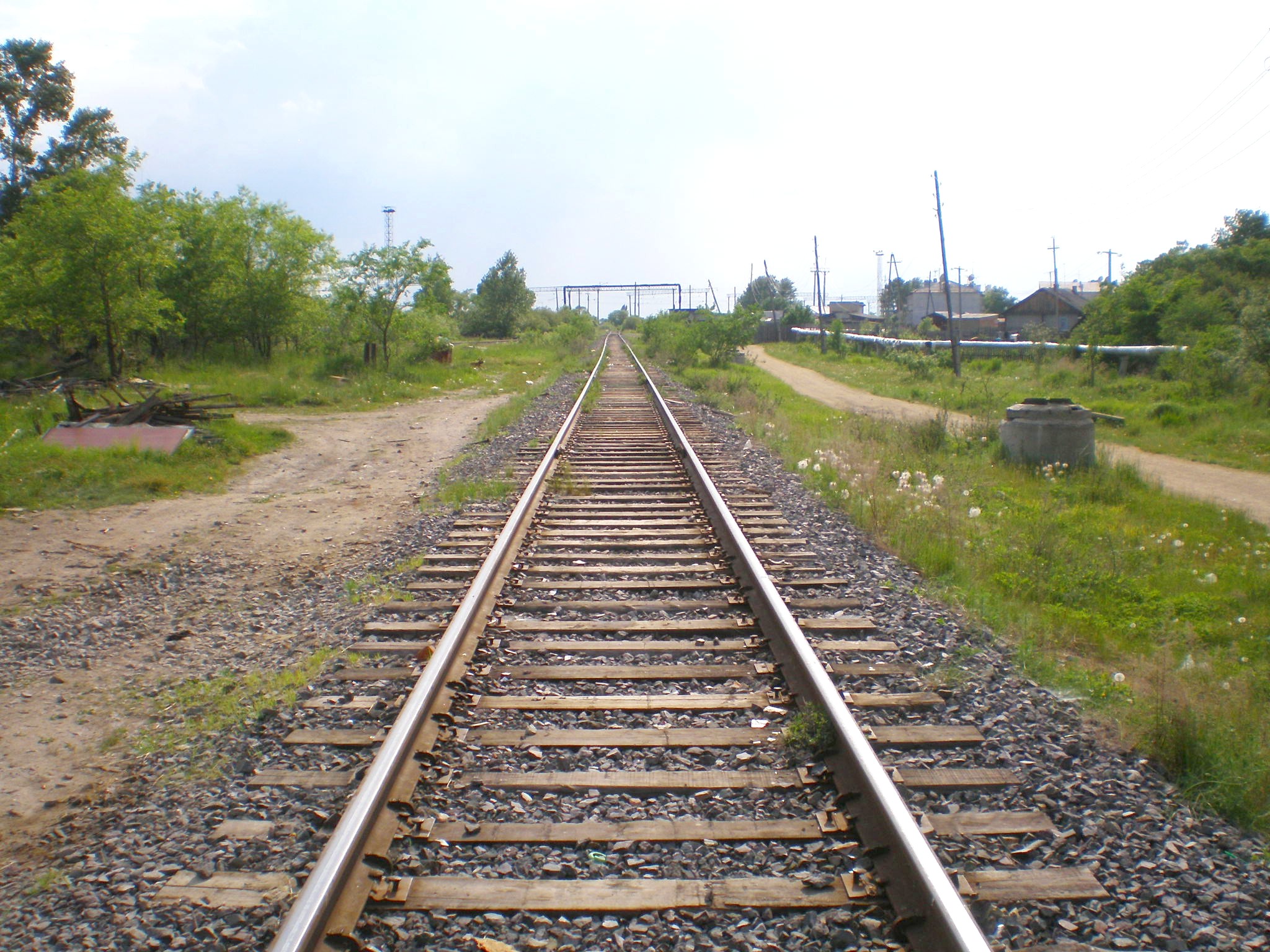 Подъездной путь, связывающей территорию Аурского шпалопропиточного завода со станцией Аур. Вид в сторону станции Аур.