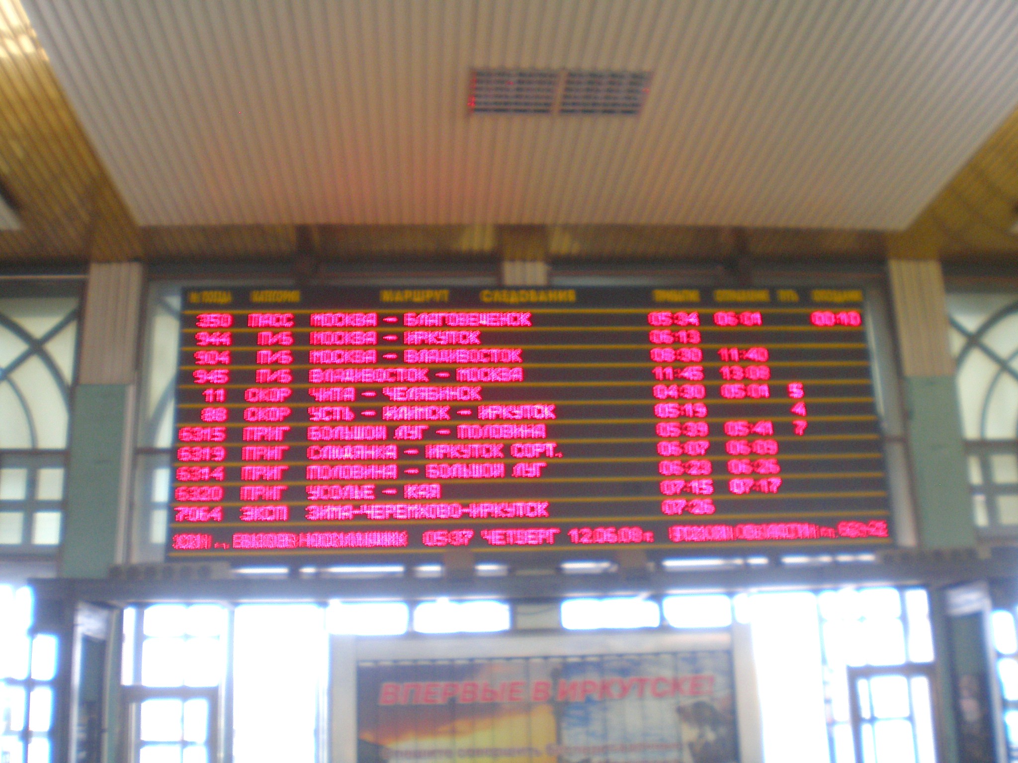 Информационное табло на вокзале Иркутск-Пассажирский.