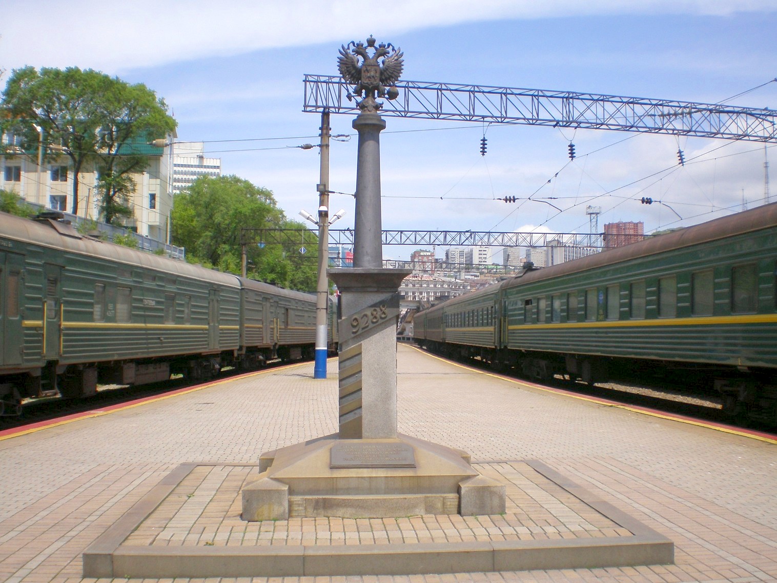 Станция Владивосток. Вид в южном направлении. Памятник, символизирующий окончание