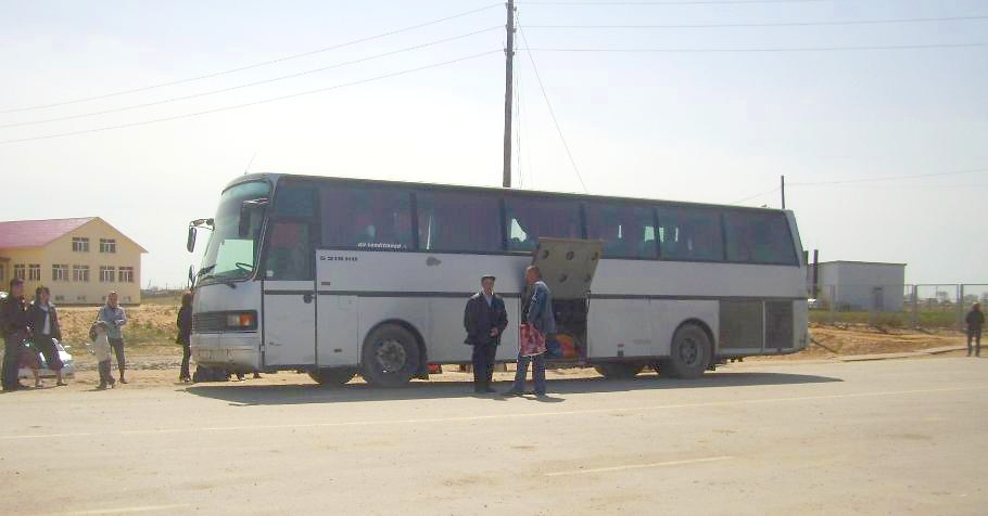 Билет на автобус от Астрахани до Гурьева стоил 544 рубля, расстояние — около 370 километров. Автобус следовал не так, как можно было бы предполагать, глядя на карту: не через Красный Яр, а через Началово — восточную объездную дорогу города Астрахани — окрестности Аксарайского (вблизи были видны трубы Астраханского ГПЗ) — Ватажное — Караозек.