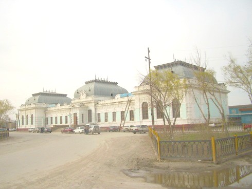Вокзал дореволюционной постройки на станции Казалинск. Вид из города.