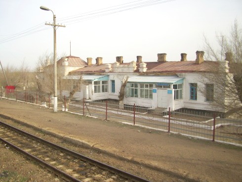 Вокзал на станции Тюратам — «ворота» города и космодрома Байконур.