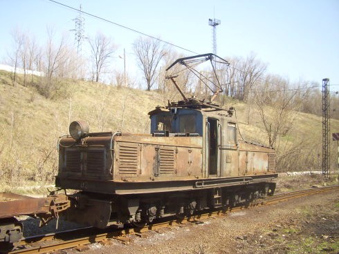 Электровоз ПЭУ2-001 в тупике. Здесь при следовании «сверху вниз»