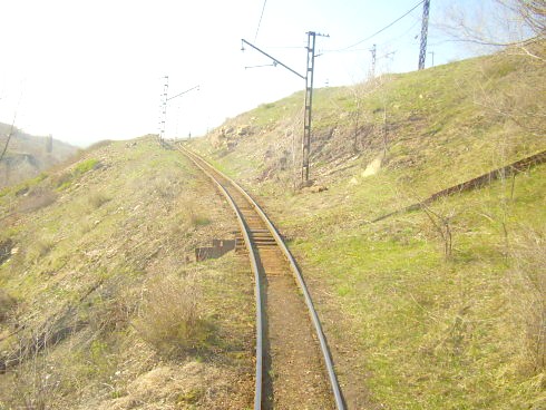контактной сети на пути, ведущем наверх, к разгрузочным бункерам.