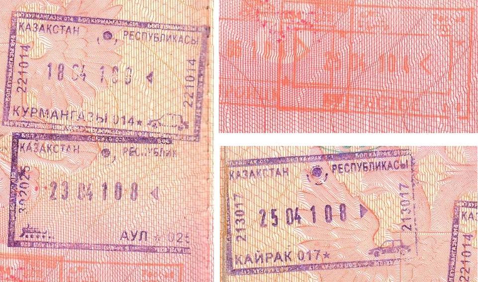 Дата-штампы из этой поездки: пункты пропуска Курмангазы (между Астраханью и Гурьевом), Аул, Кайрак,