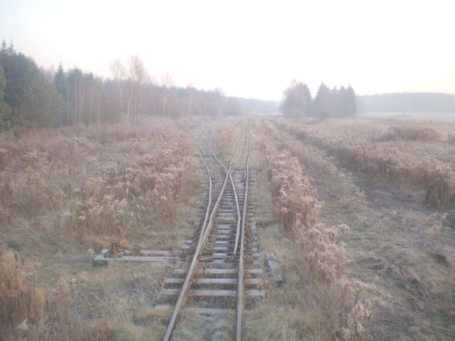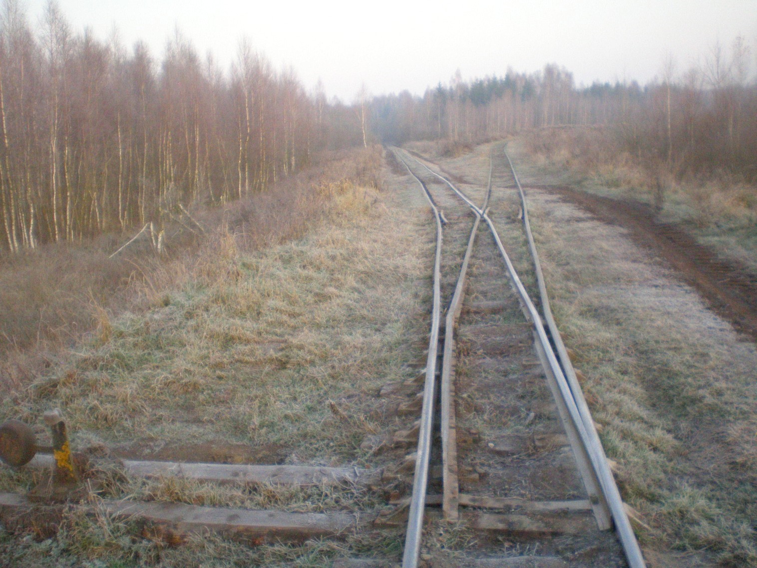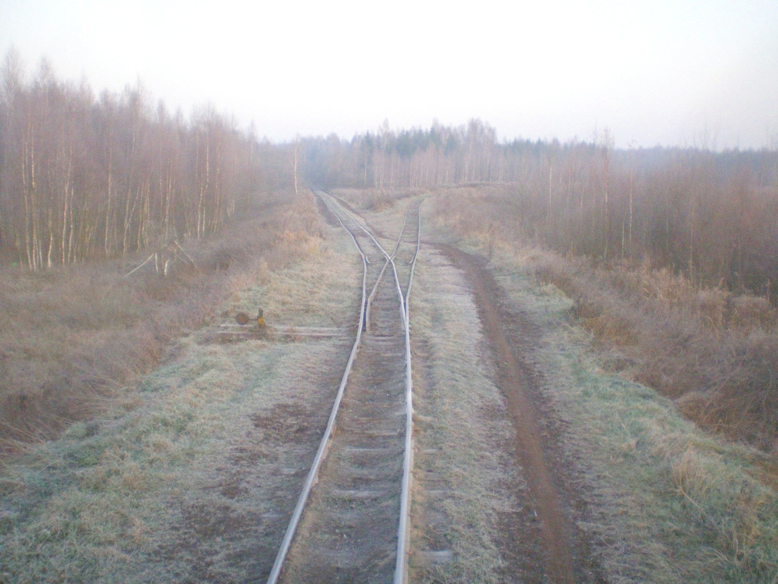 Вид в сторону Юрьево. Стрелка, на которой отходит новая линия в сторону деревни Рудня. Время 7:56.