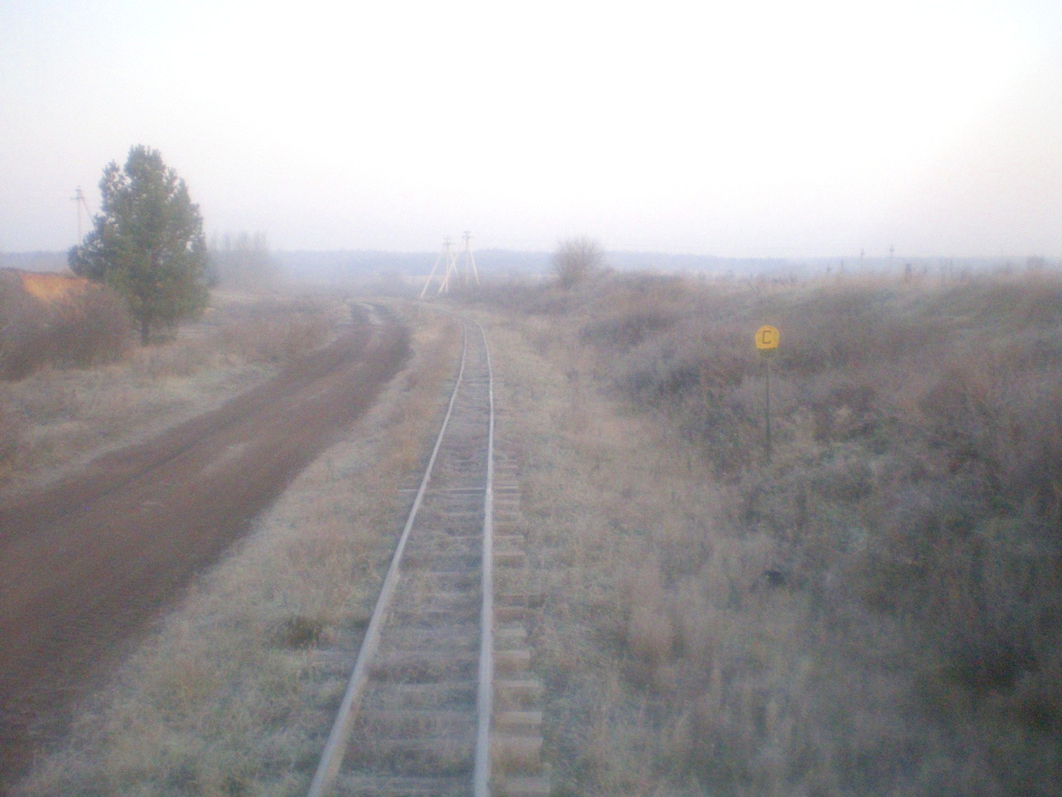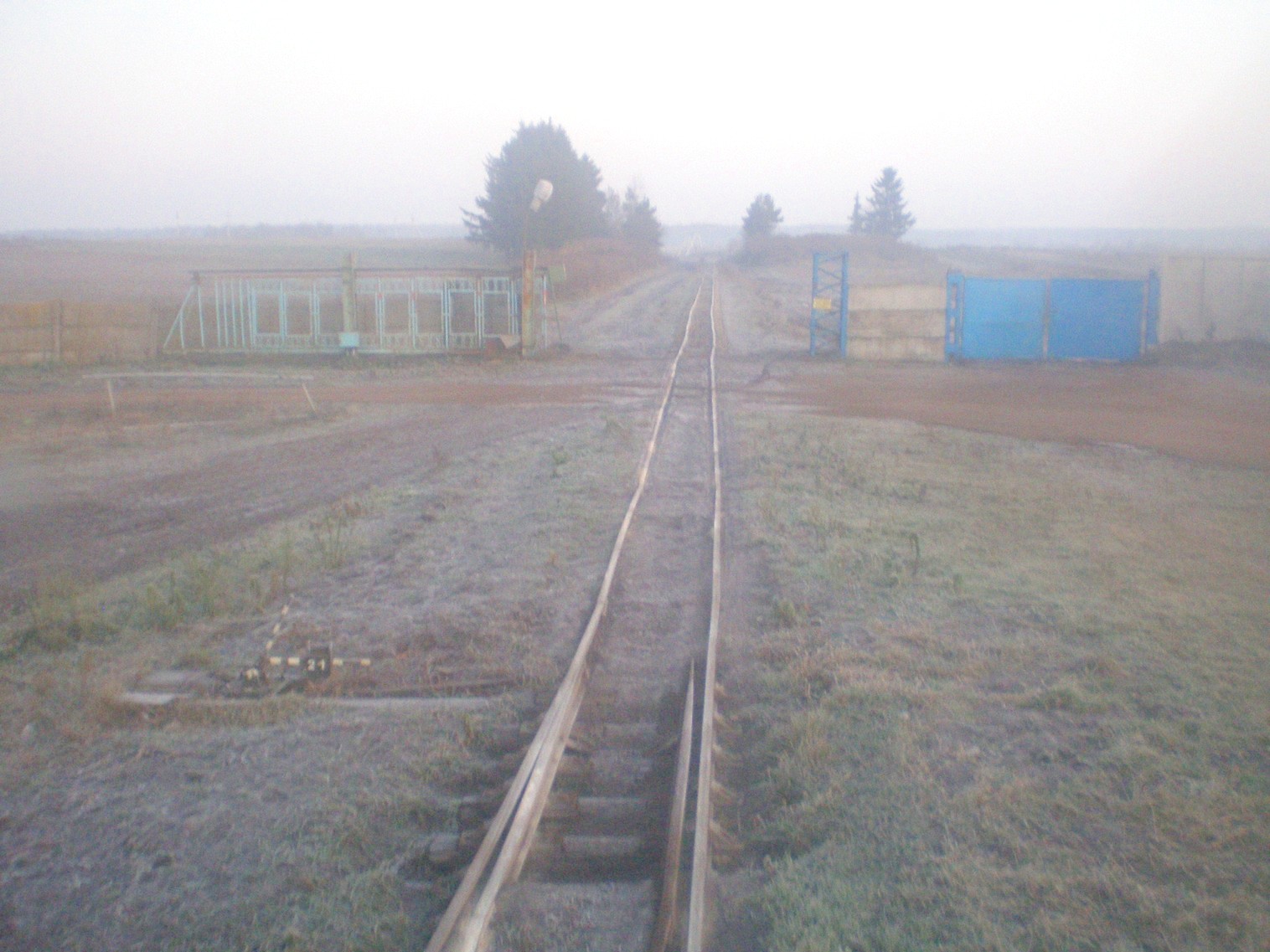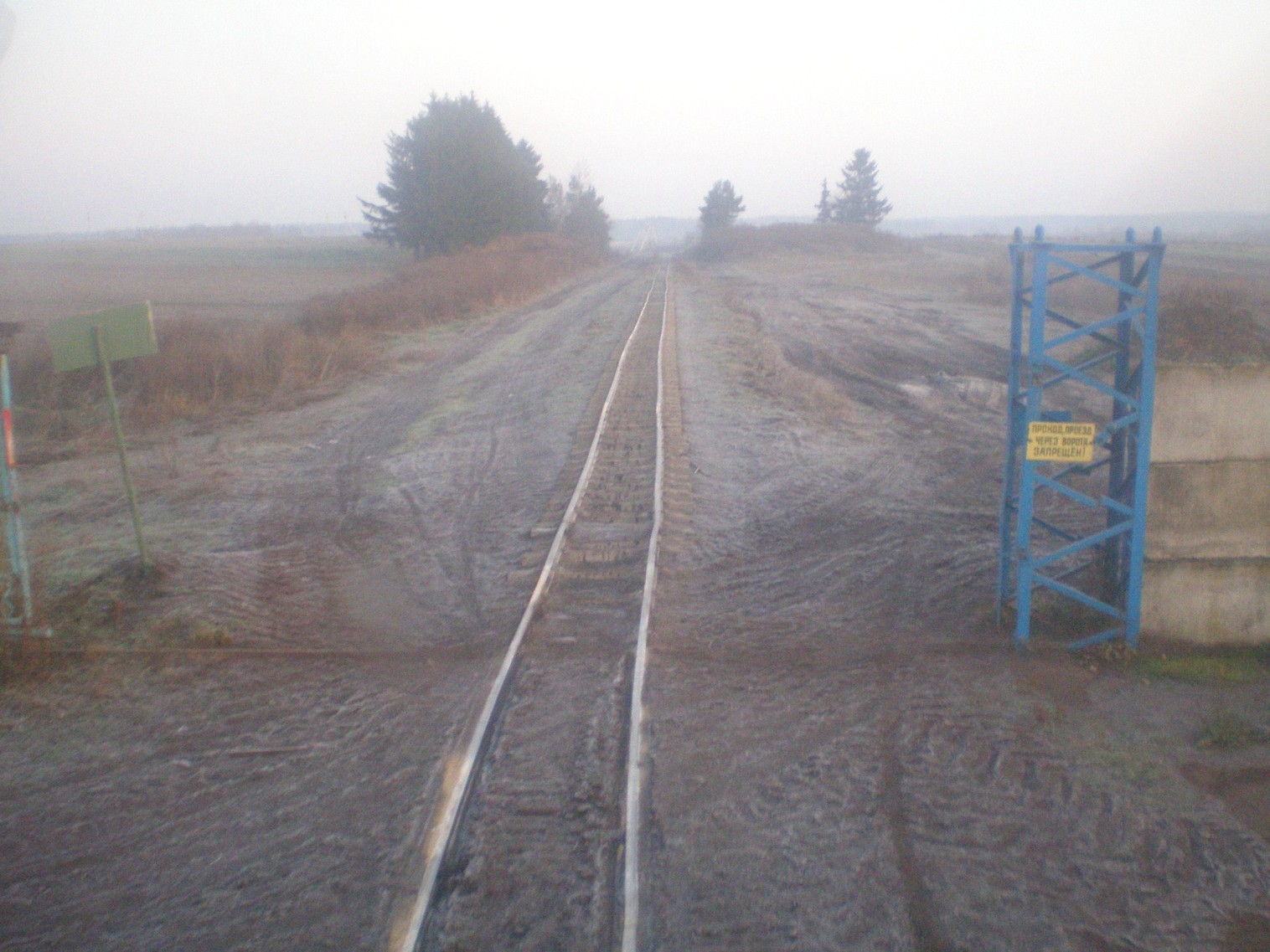 Вид в сторону Юрьево. Стрелка, на которой отходит новая линия в сторону деревни Рудня. Время 7:56.