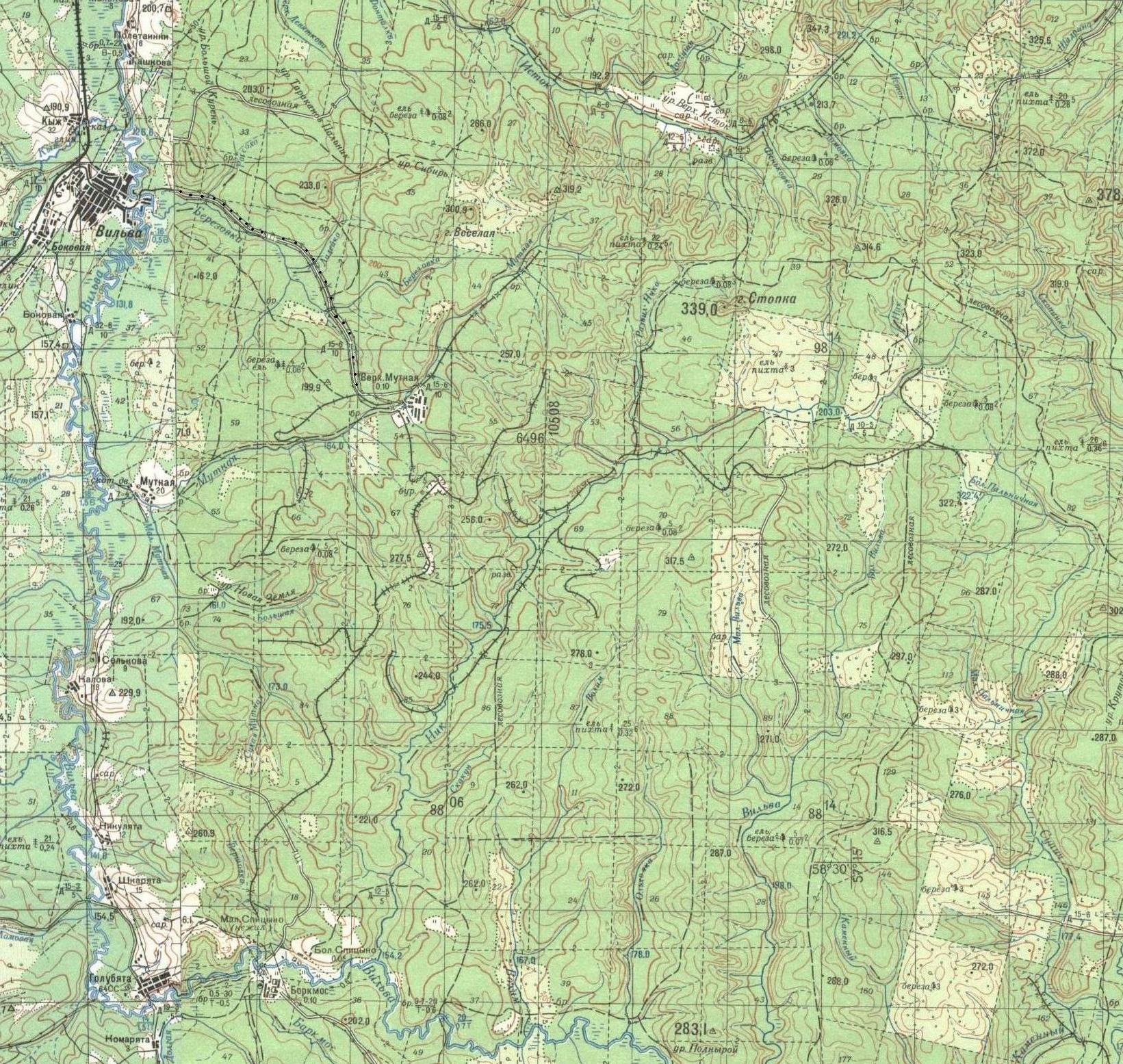На карте, изданной в 1986 году, узкоколейная железная дорога не обозначена между Верхней Мутной и Вильвой.