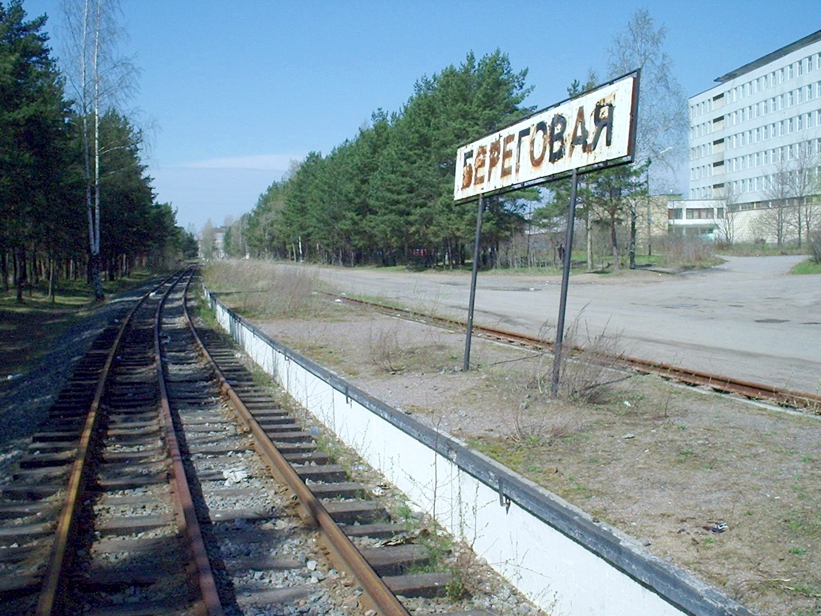 На снимках: недействующий участок Озёрная — Береговая, недействующая станция Береговая.