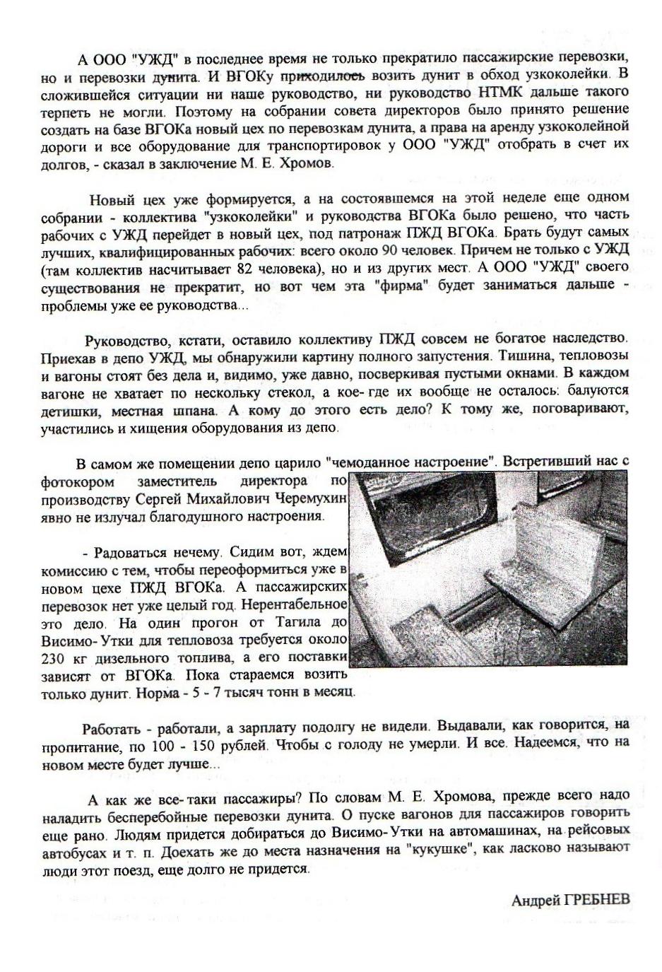 «Будущее узкоколейки покрыто туманом» (газета «Тагильский рабочий», 2001 год).