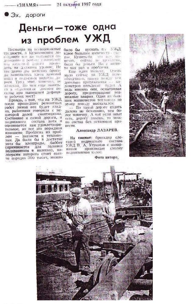 Материал «Деньги — тоже одна из проблем УЖД», опубликованный