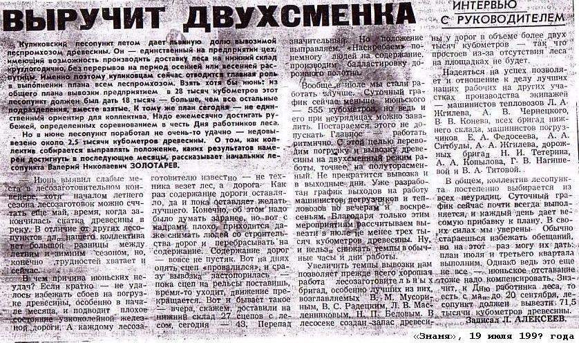 Материал «Выручит двухсменка», опубликованный в красноборской районной газете «Знамя».