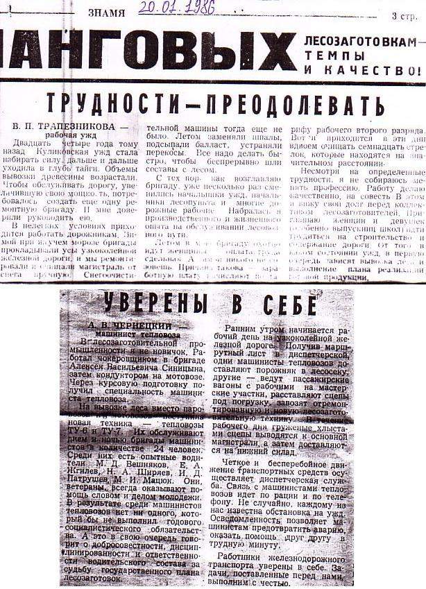Две заметки работников Куликовской узкоколейной железной дороги,