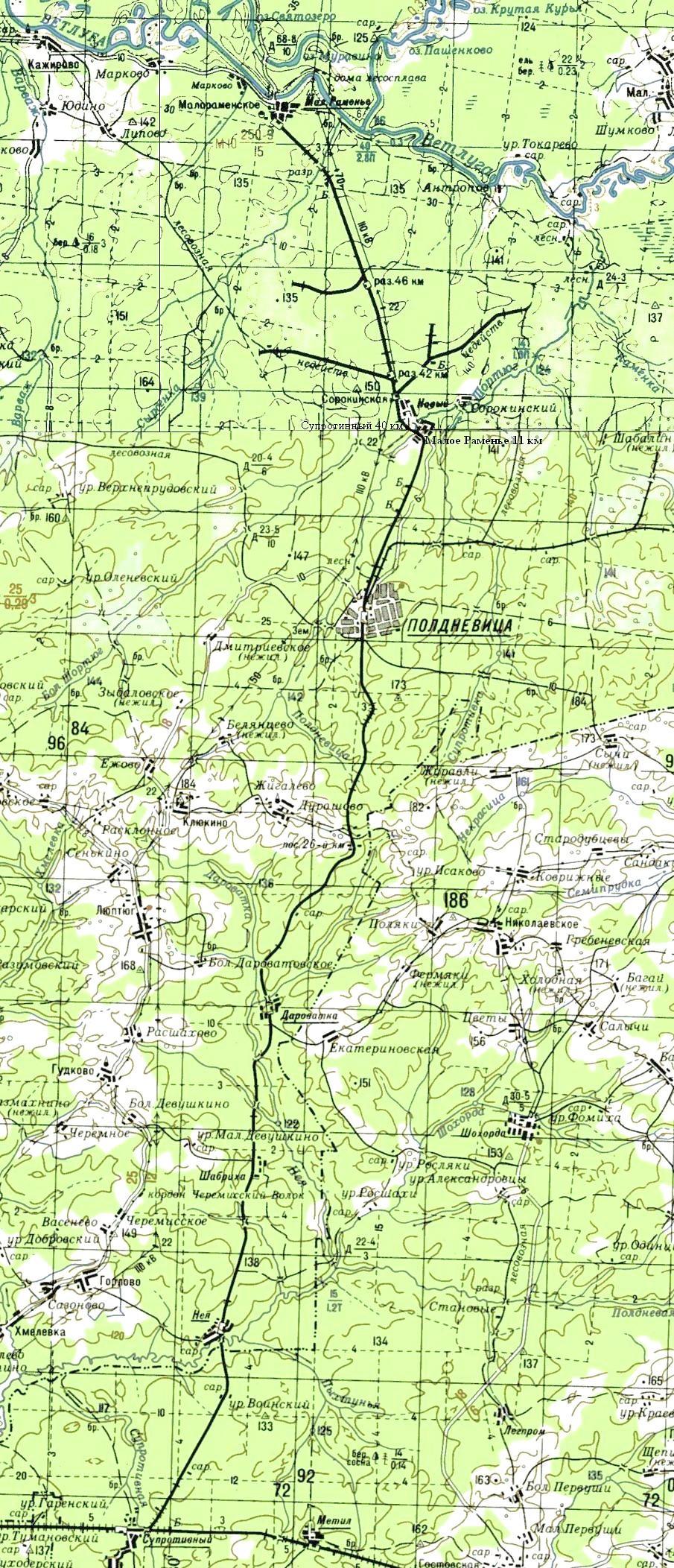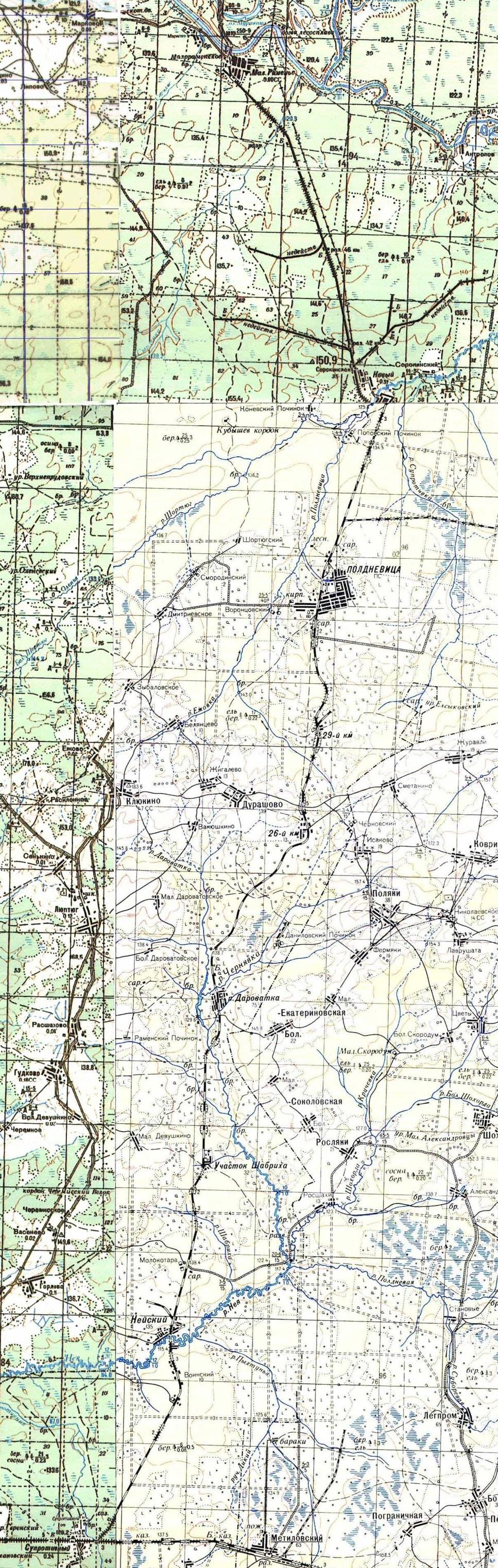 Шортюгская железная дорога на топографической карте масштаба 1:100 000. «Юго-восточный» фрагмент