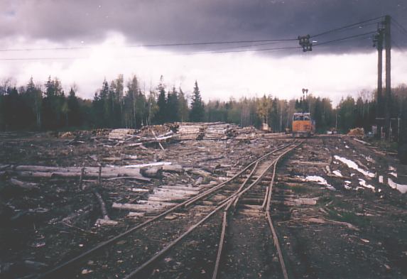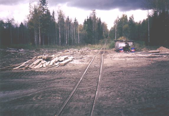 Район лесозаготовок находится приблизительно в 18 километрах от нижнего склада. Протяжённость действующих линий узкоколейной железной дороги составляет около 20 километров. От нижнего склада поезда следуют в северном направлении приблизительно на 13 километров — до места, где старая магистральная линия пролегает вблизи бывшего населённого пункта Колыбаево. Далее в северном направлении путь разобран, действующая линия поворачивает налево — к местам погрузки леса.