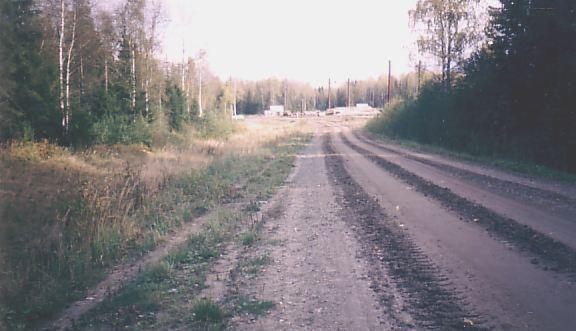 Дорога приводит к нижнему складу (его строения заметны вдали). Вид со стороны посёлка.
