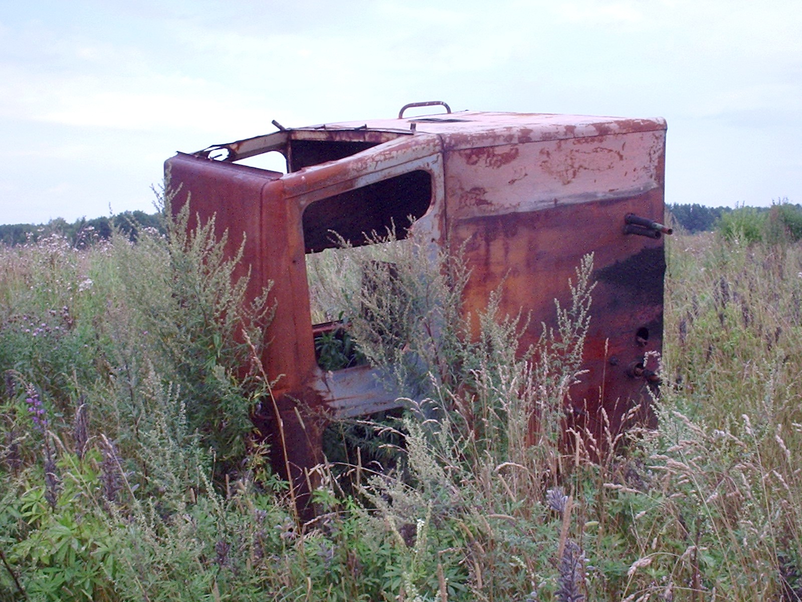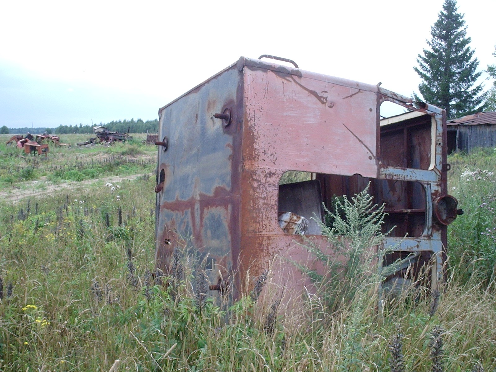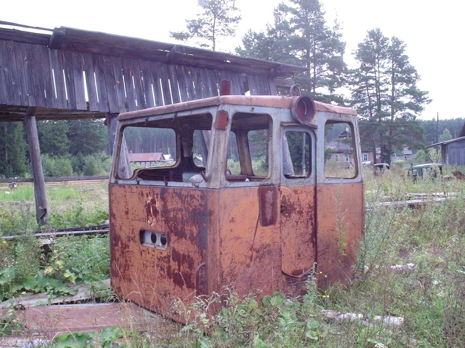 стоят две тепловозные кабины — последнее, что осталось от подвижного состава.