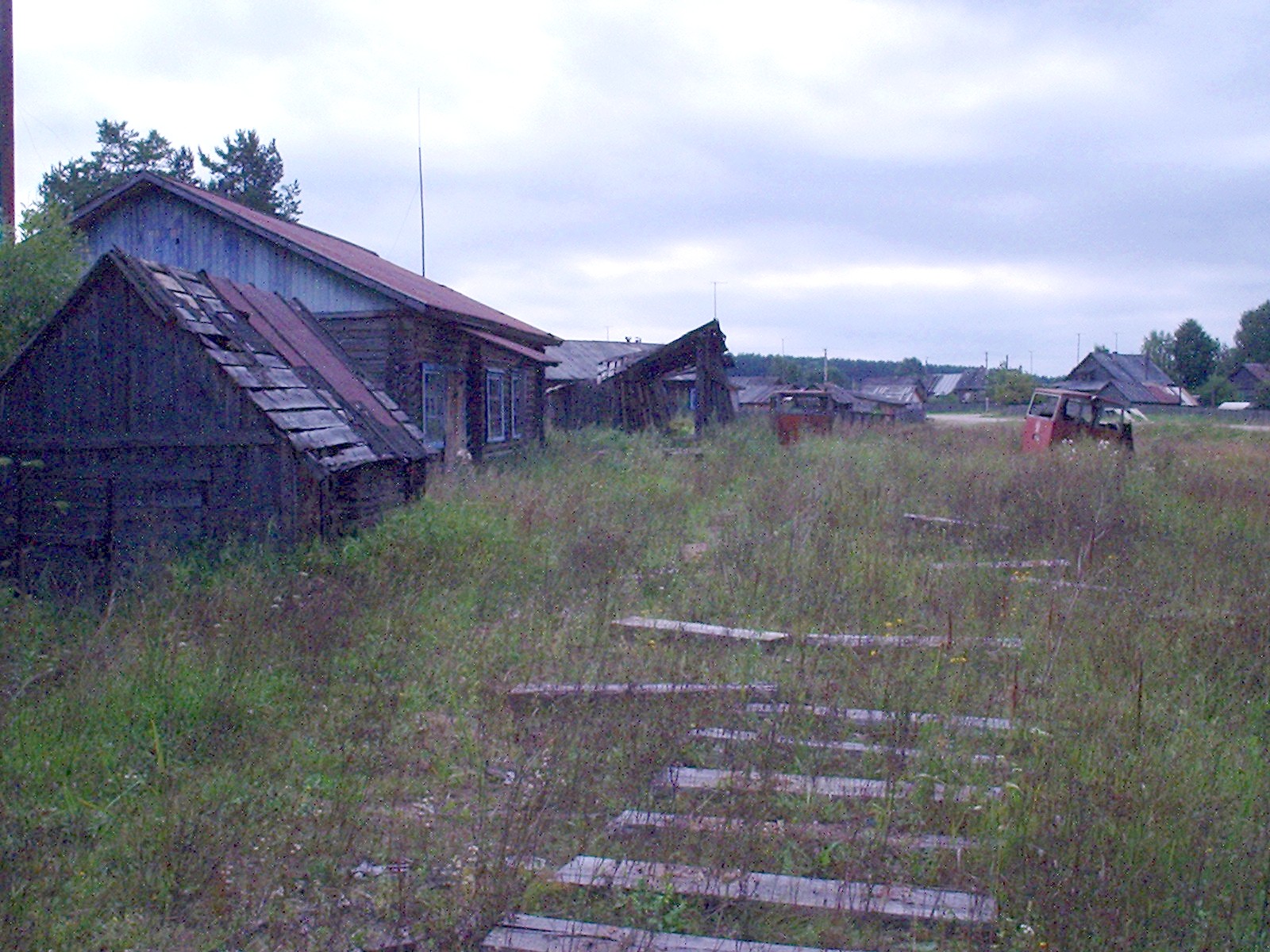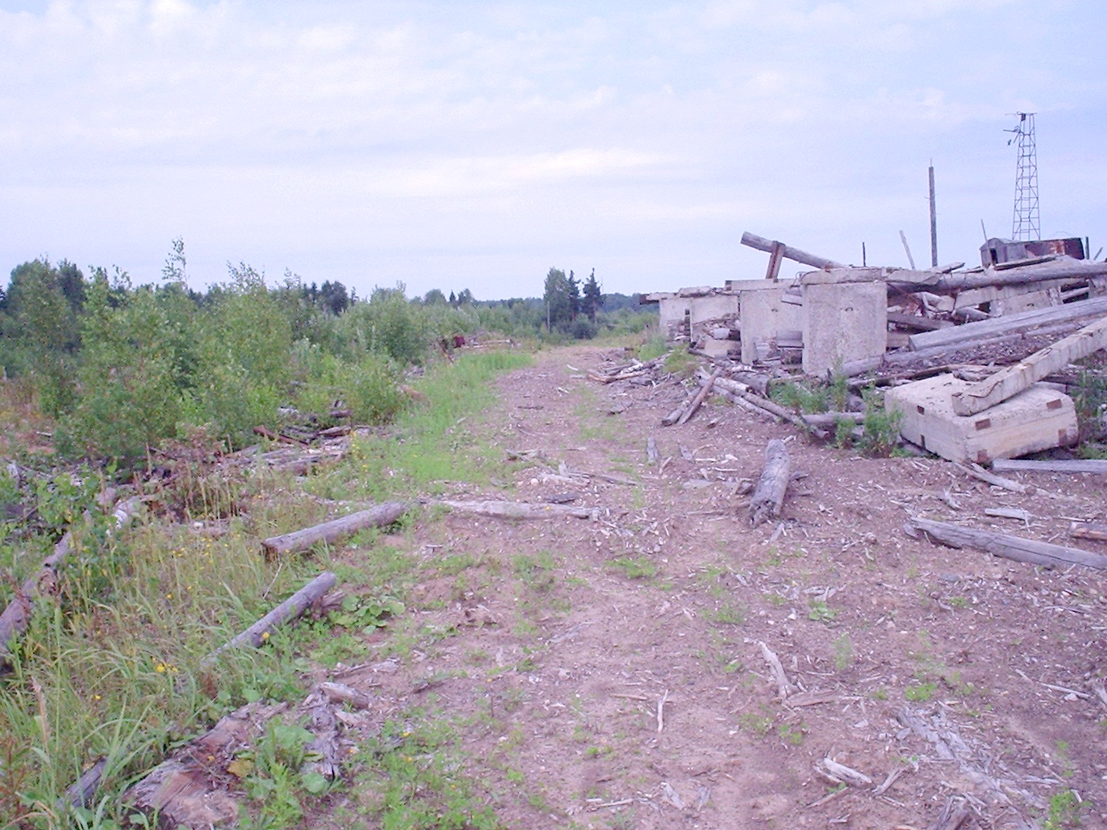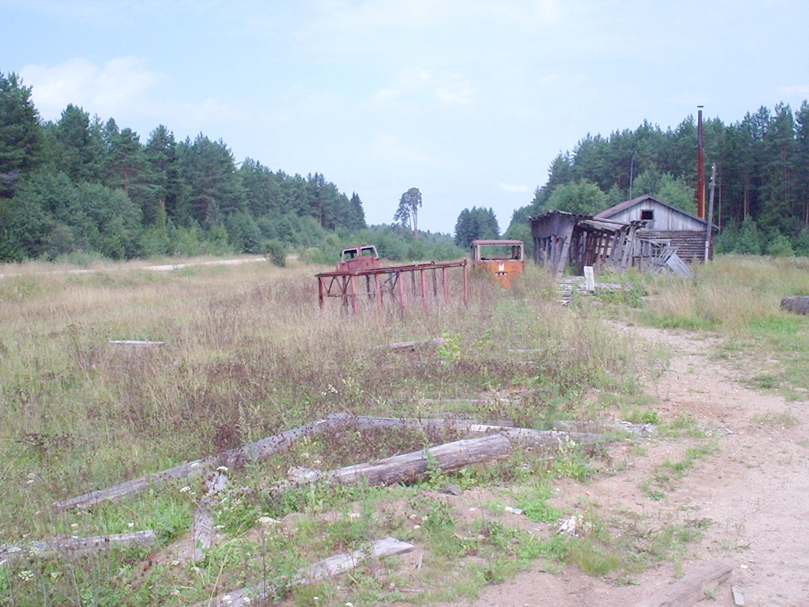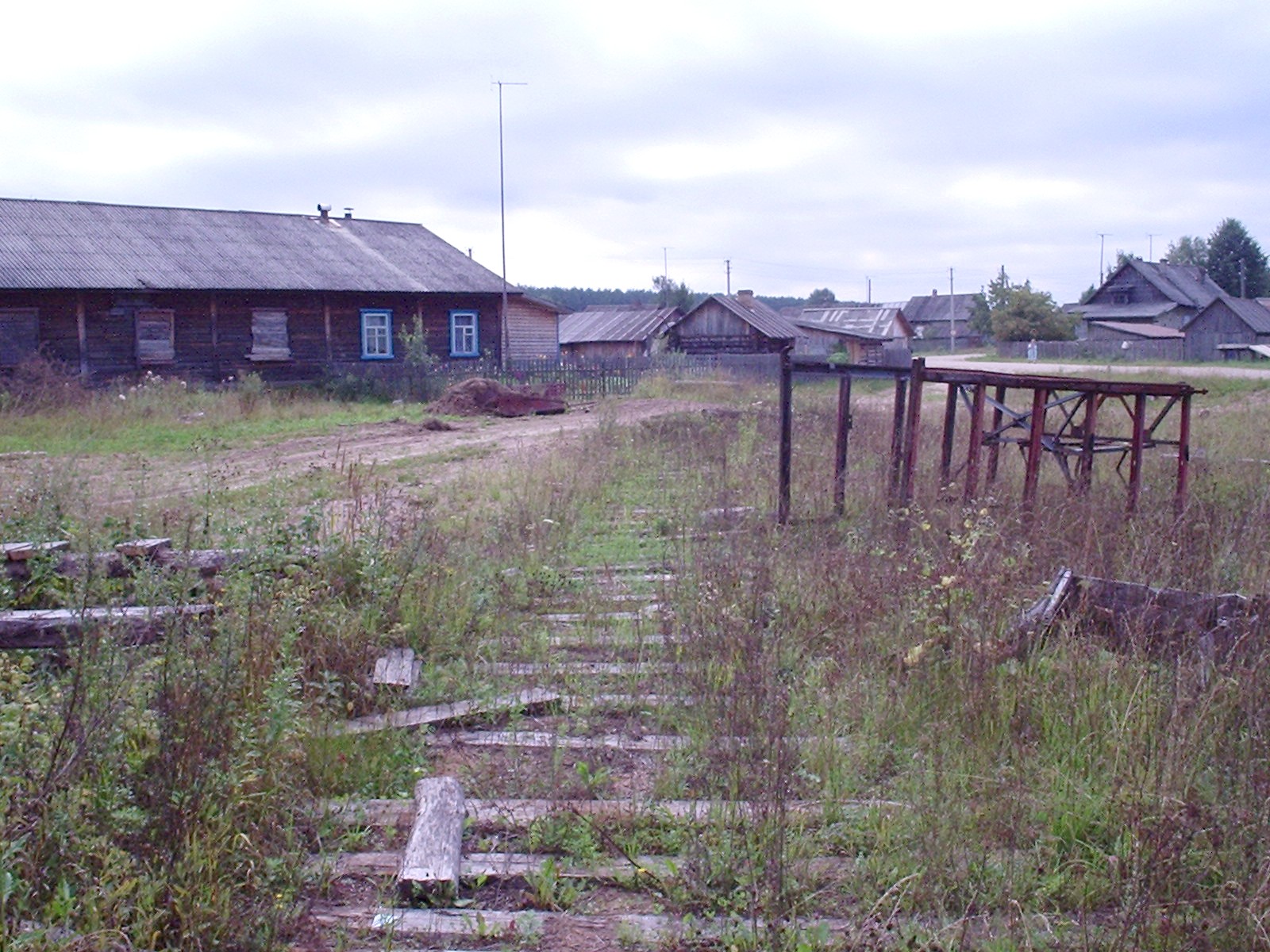 Полуразрушенная пассажирская посадочная платформа в посёлке Якша. Рядом с ней