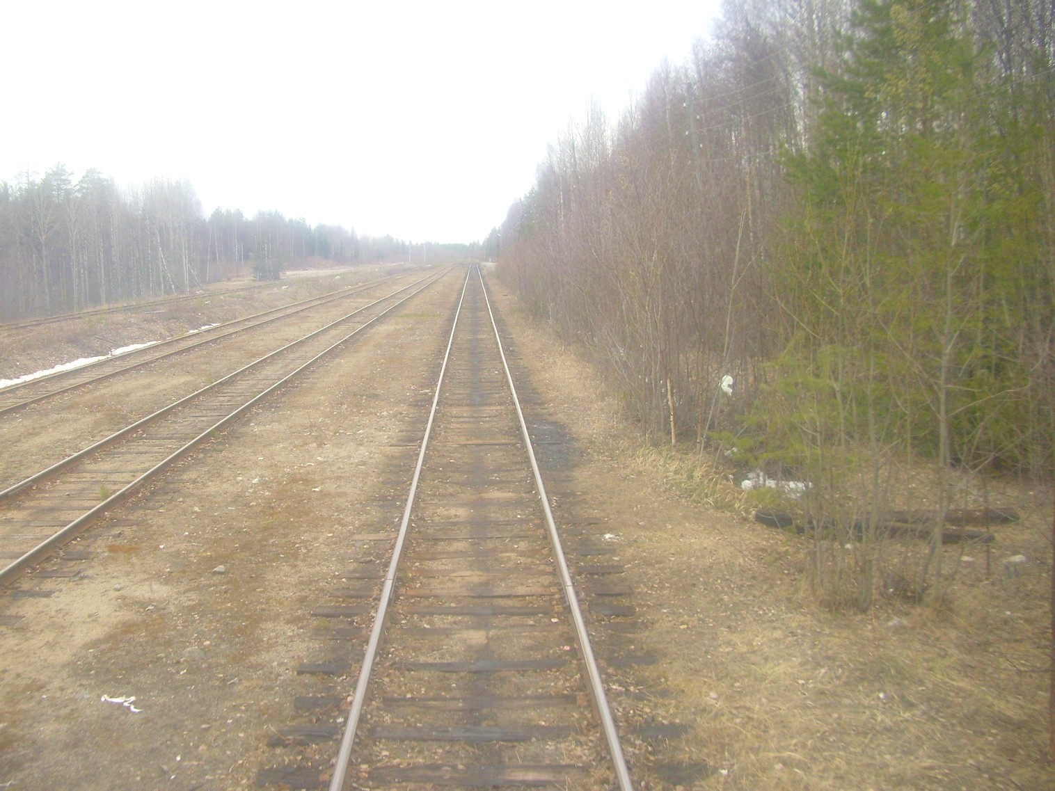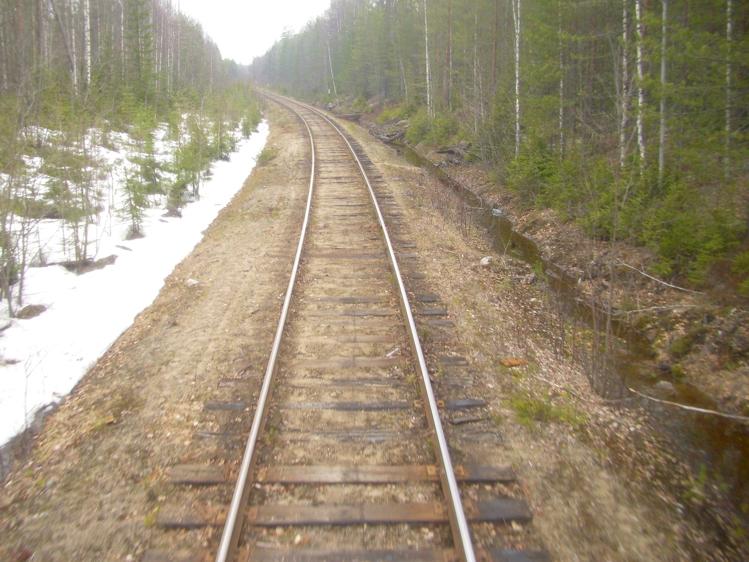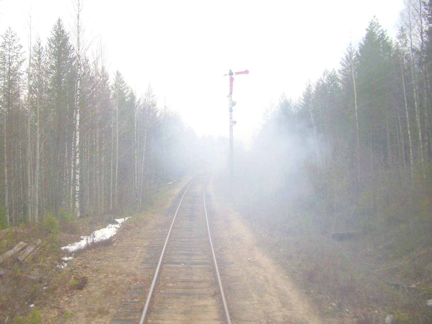Поезд отправился. Впереди — входной семафор станции Лендеры. Время 16:11.
