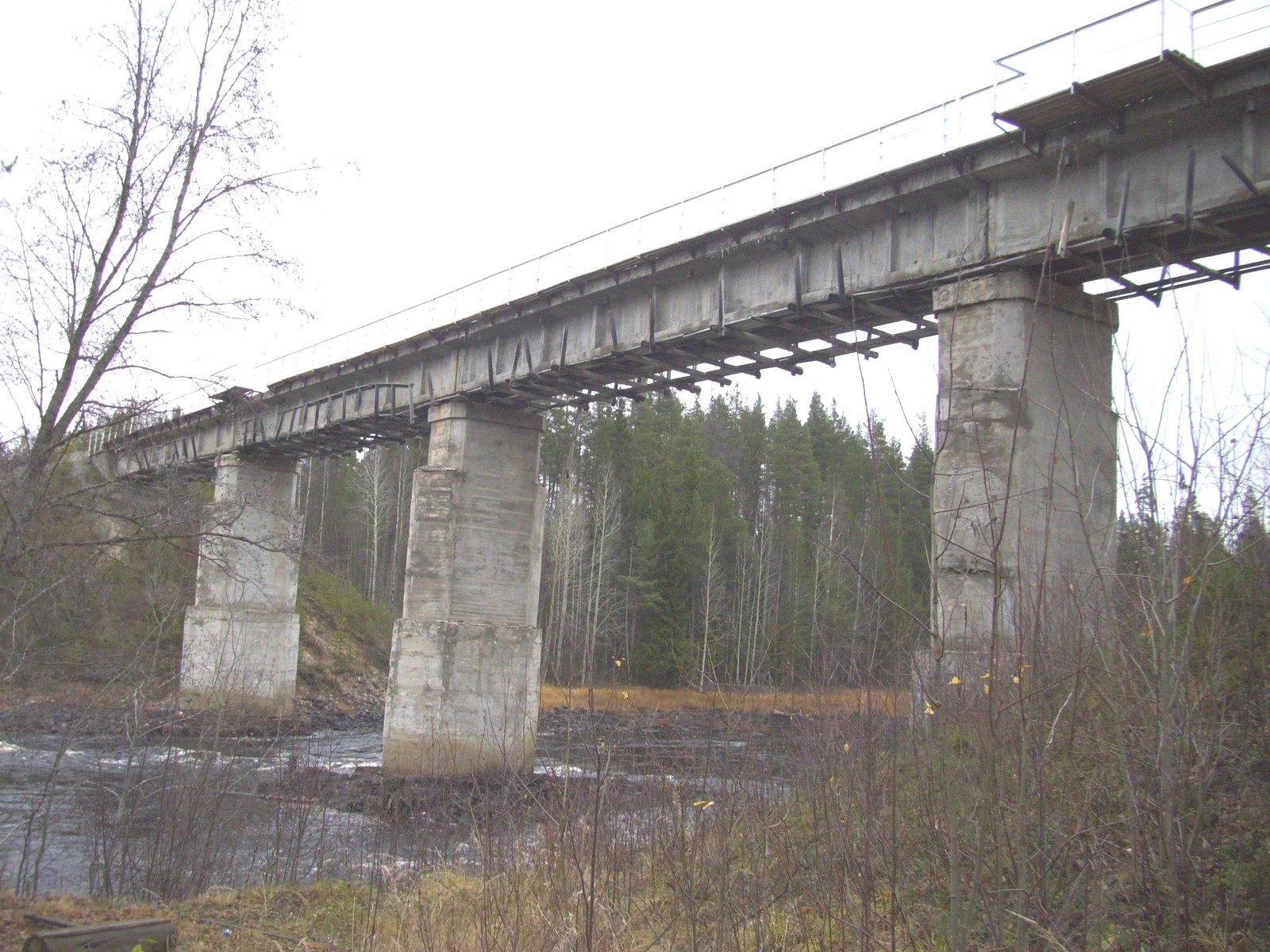 Мост через реку Чирка-Кемь. Вид на север, в сторону станции Юшкозеро.