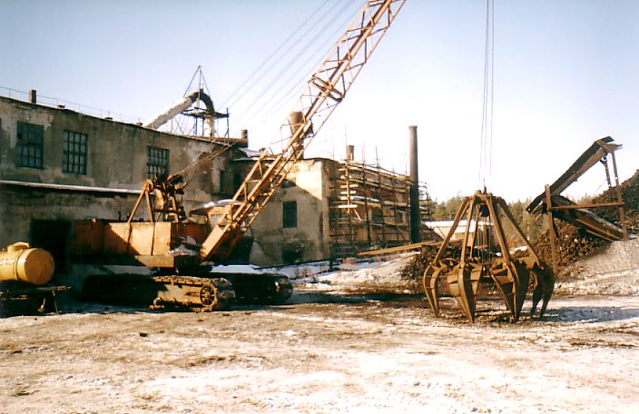 в нерабочем состоянии). Заметен канат, используемый для тяги вагонов между станцией и бункером.