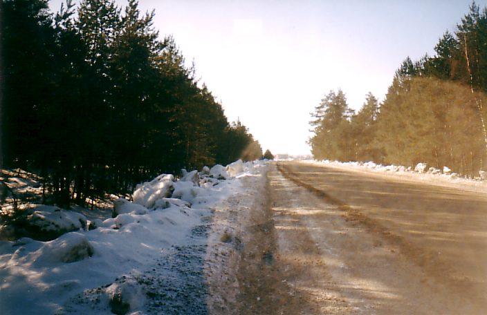 Приблизительно 1 километр от «первого поворота». Вид в направлении торфомассивов.