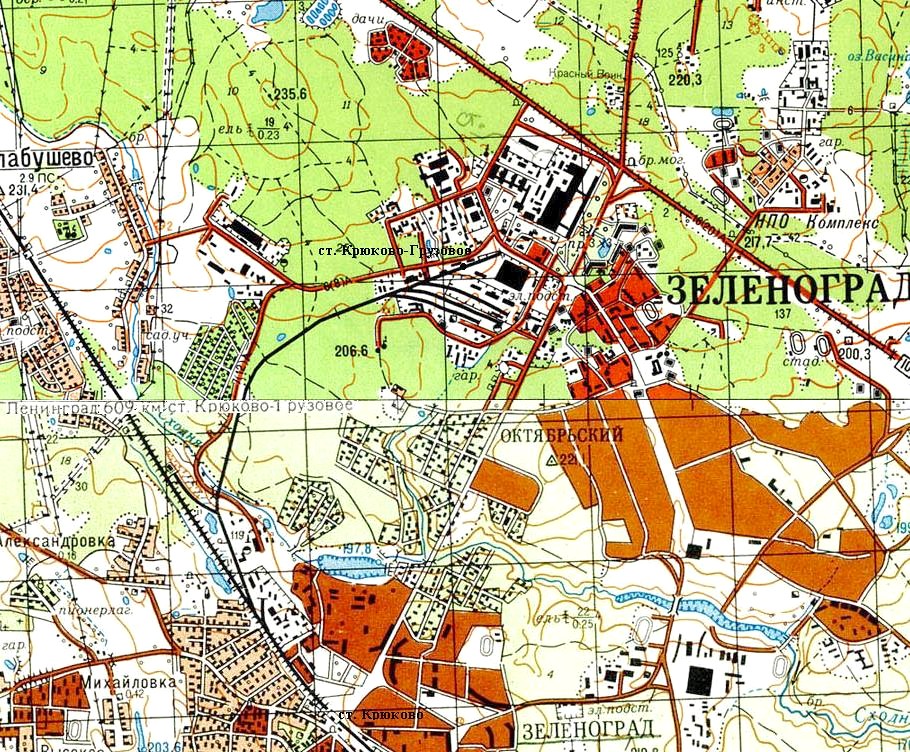 Железнодорожная линия на топографической карте масштаба 1:50 000, изданной в 1983 году.