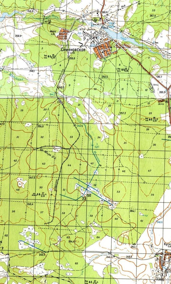 Узкоколейная железная дорога на топографической карте масштаба 1:50 000.