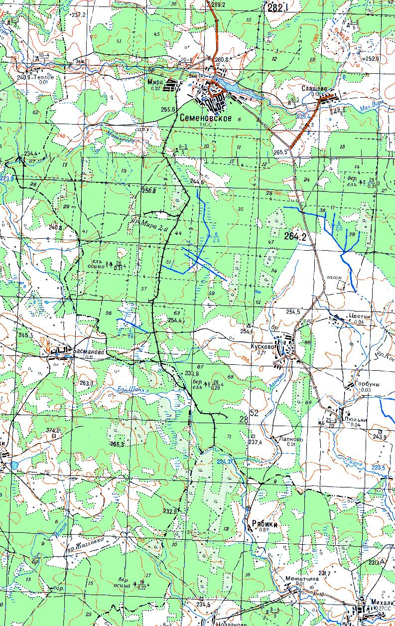 Узкоколейная железная дорога на топографической карте масштаба 1:100 000.