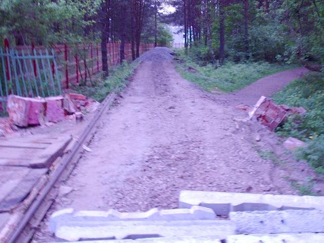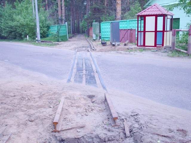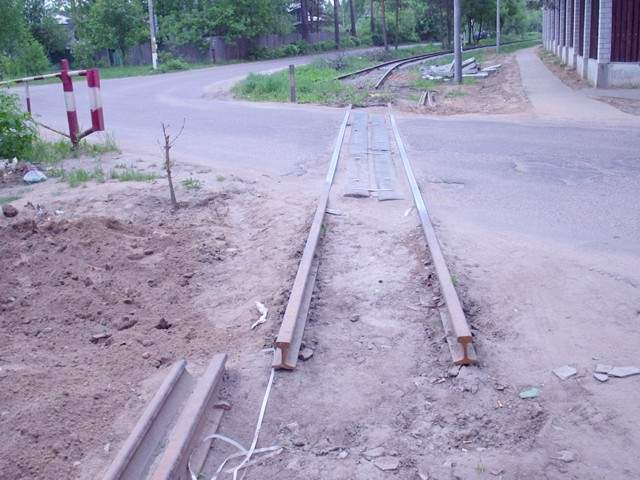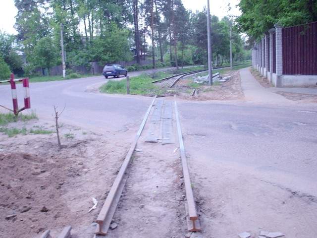 Вблизи переезда рельсы обрываются. Вид в направлении станции Пионерская.