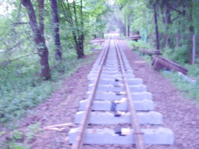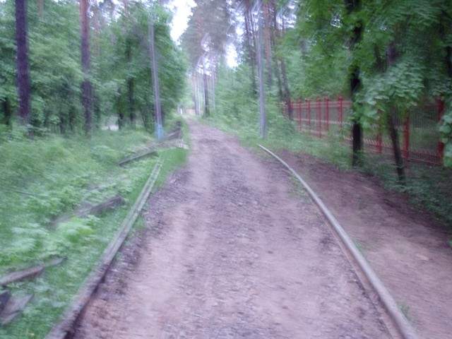 В глубине лесопарка снова начинаются рельсы. Вид в направлении станции Юность.