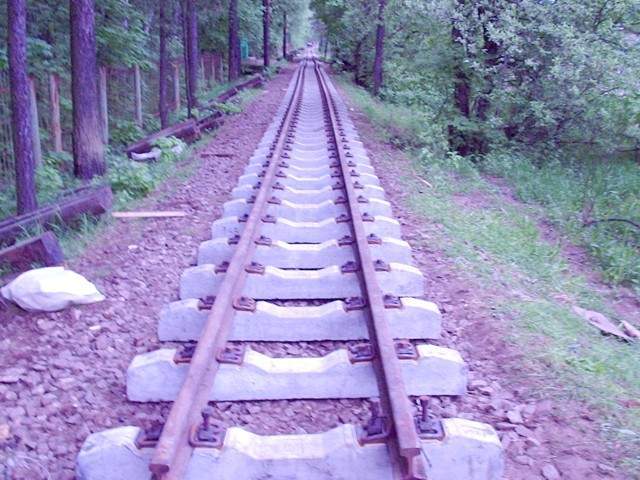Последняя кривая осталась позади, линия узкоколейной железной дороги пролегает