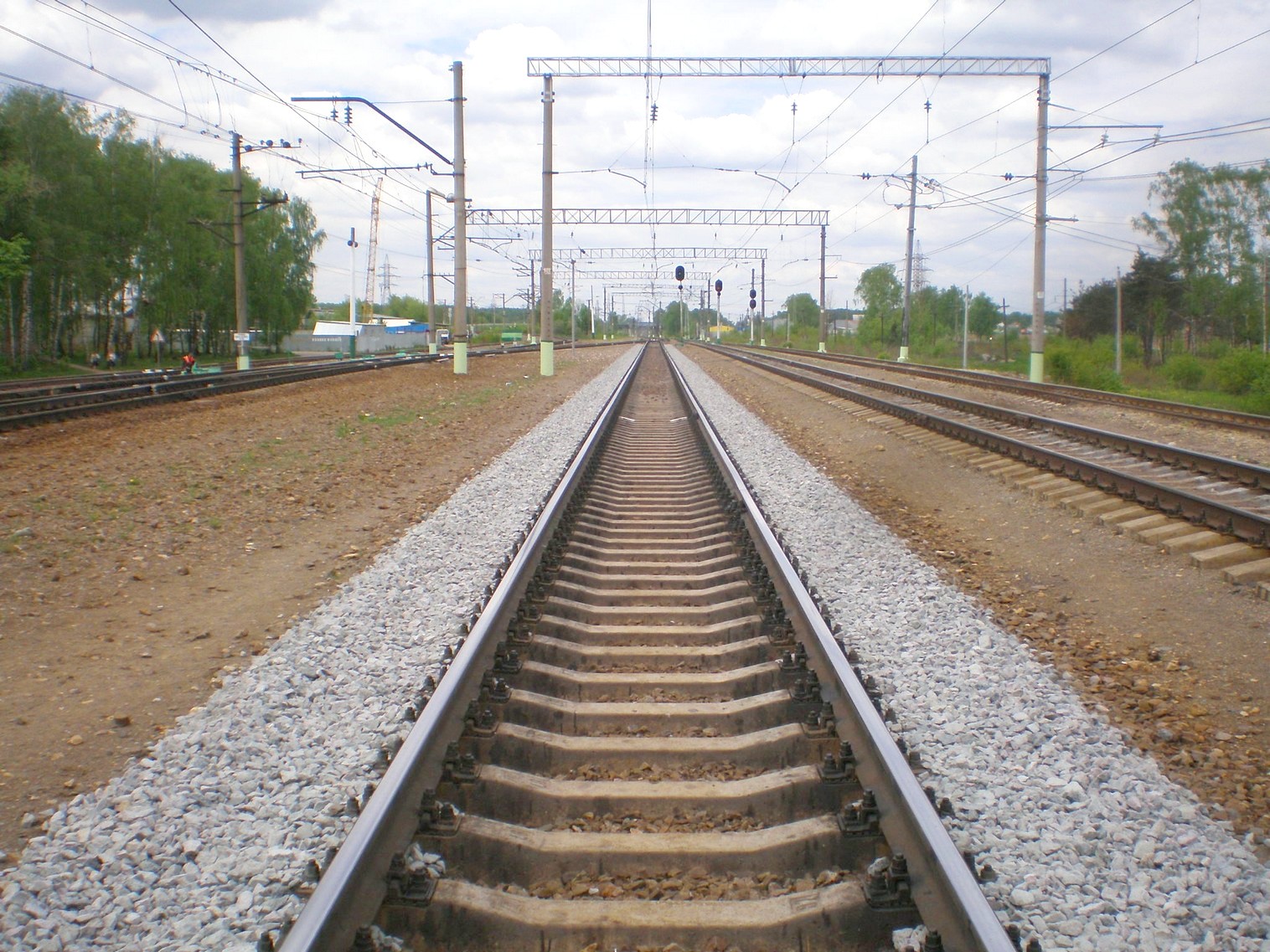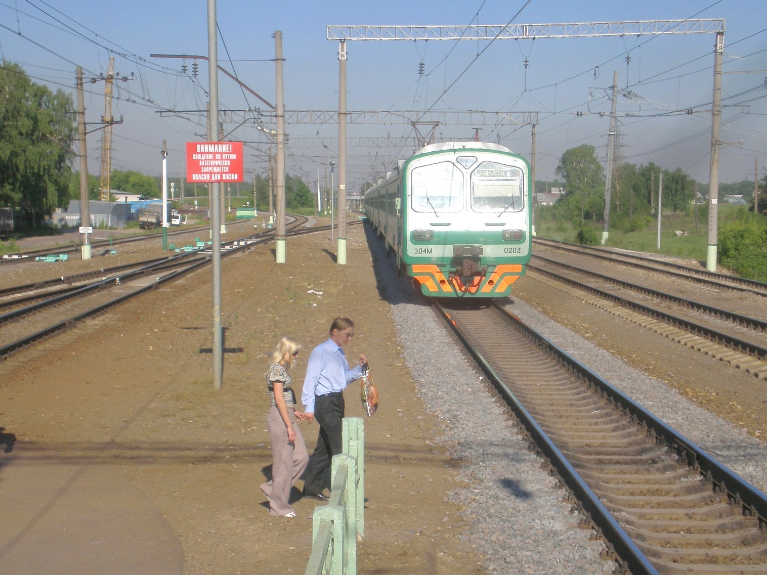 Впереди — платформа на станции Овражки. Вид на восток.