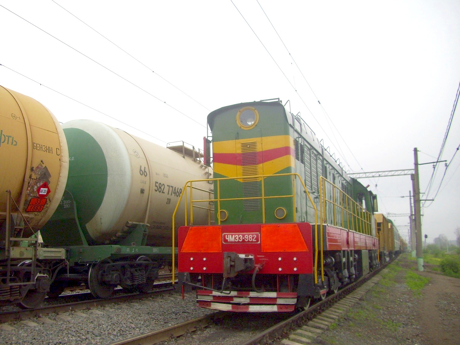 Тепловоз ЧМЭ3-982 на крайнем северном пути. Вид на запад.