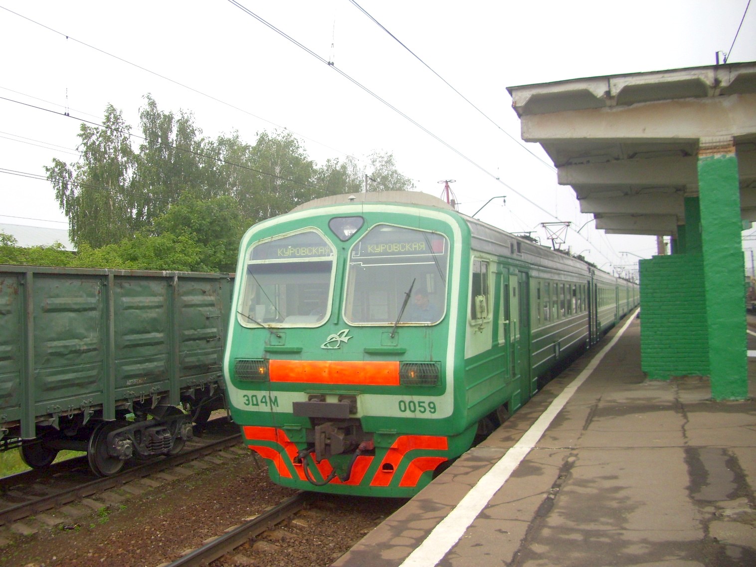 Прибывает электропоезд ЭД4М-0059. Вид на запад.