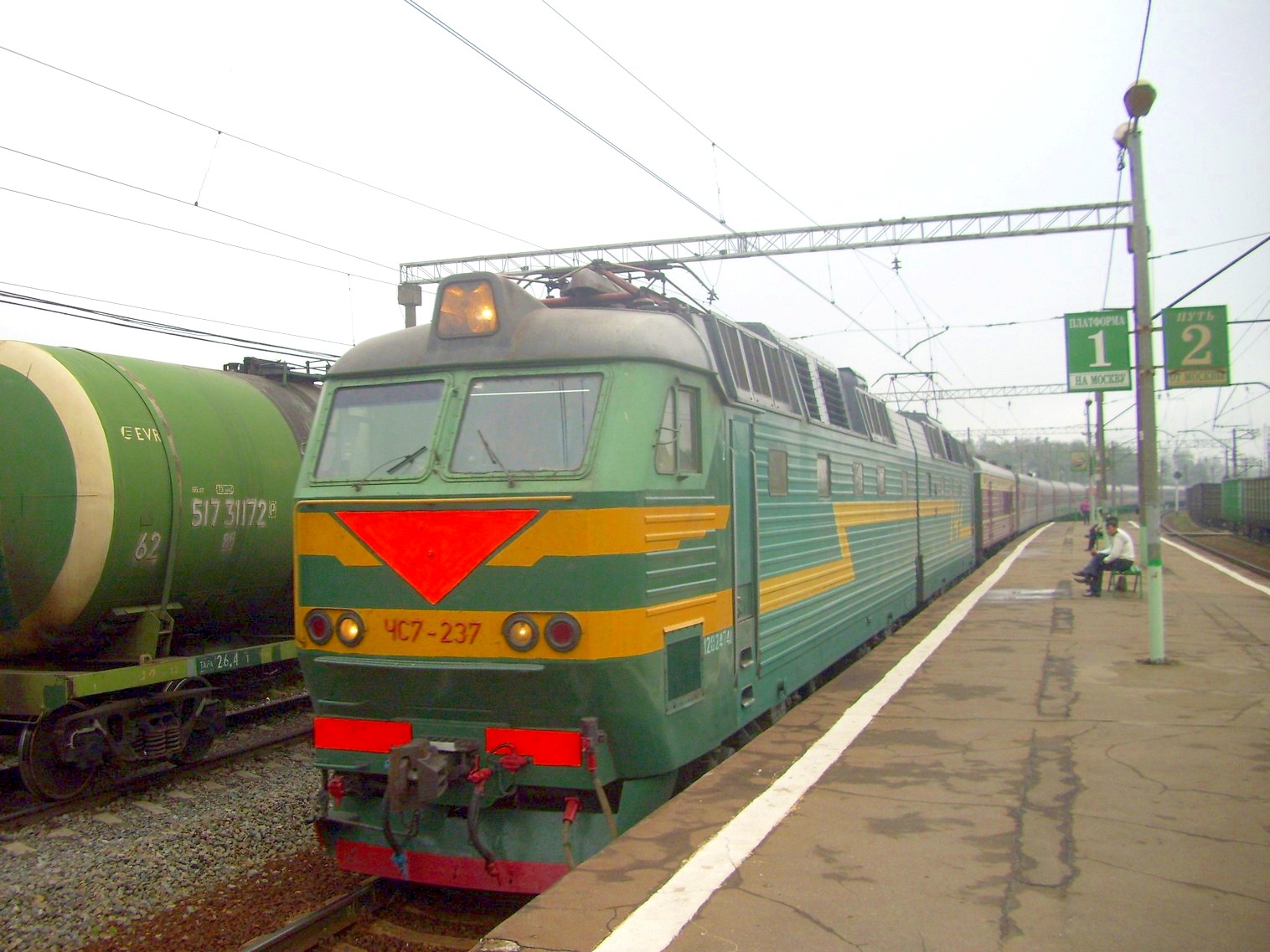 Электровоз ЧС7-237 с пассажирским поездом. Вид на восток.