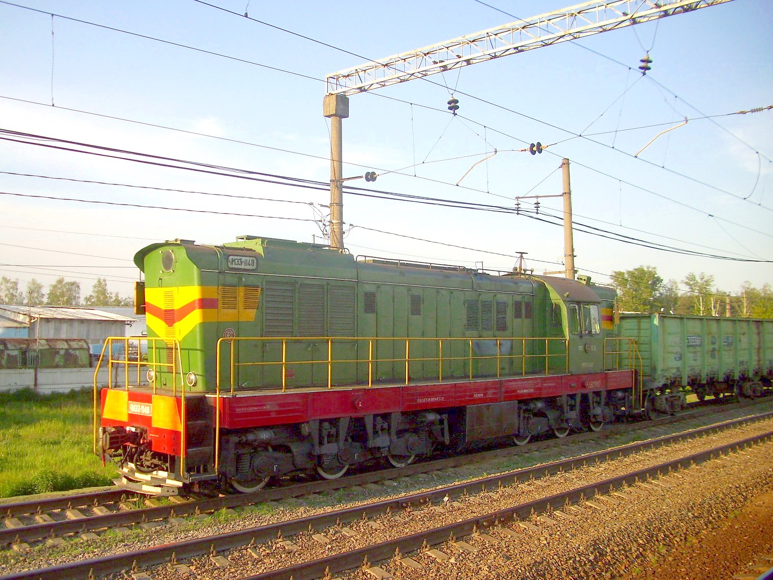 Тепловоз ЧМЭ3-1148 с грузовыми вагонами.