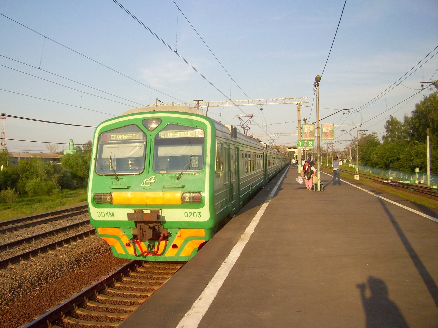 Прибывает электропоезд ЭД4М-0203. Вид на восток.