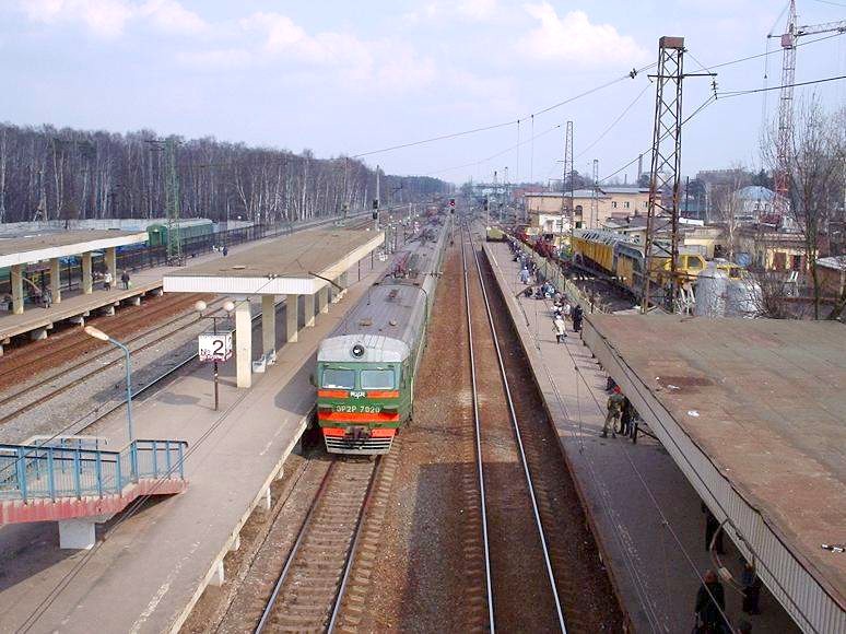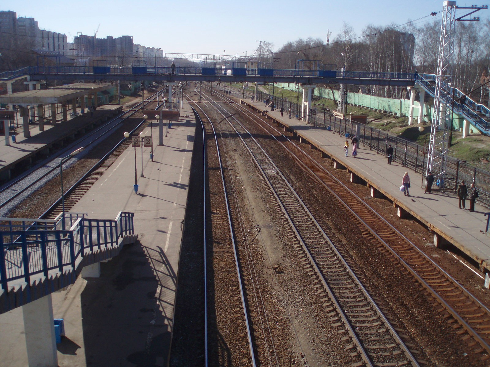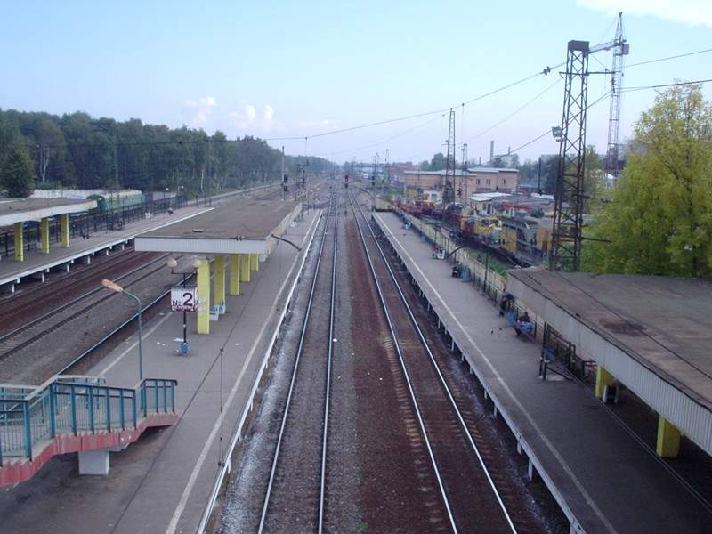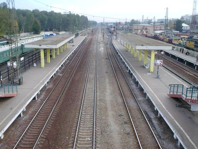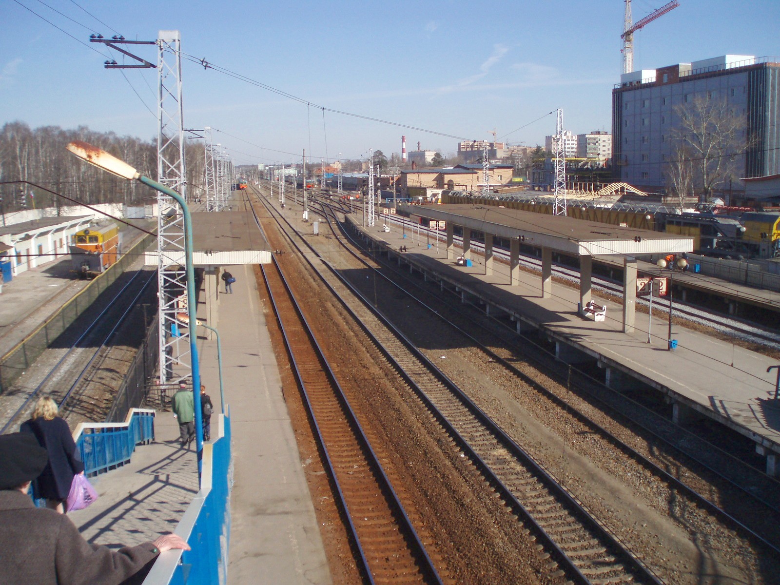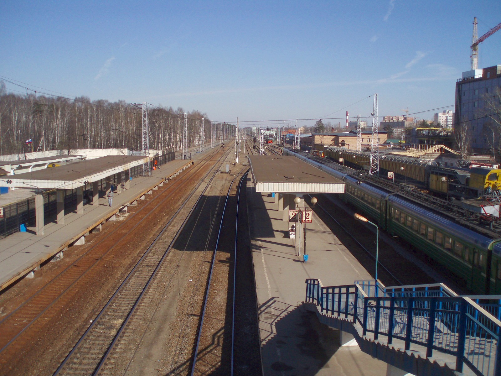 Станция Железнодорожная. Вид с «восточного» (внутреннего) переходного моста в восточном направлении.