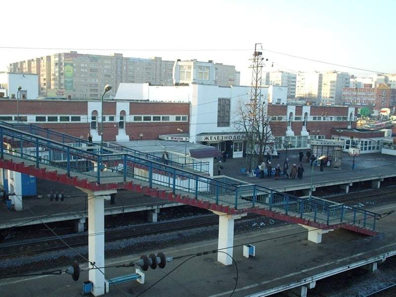 Вокзал на станции Железнодорожная. Вид из города.