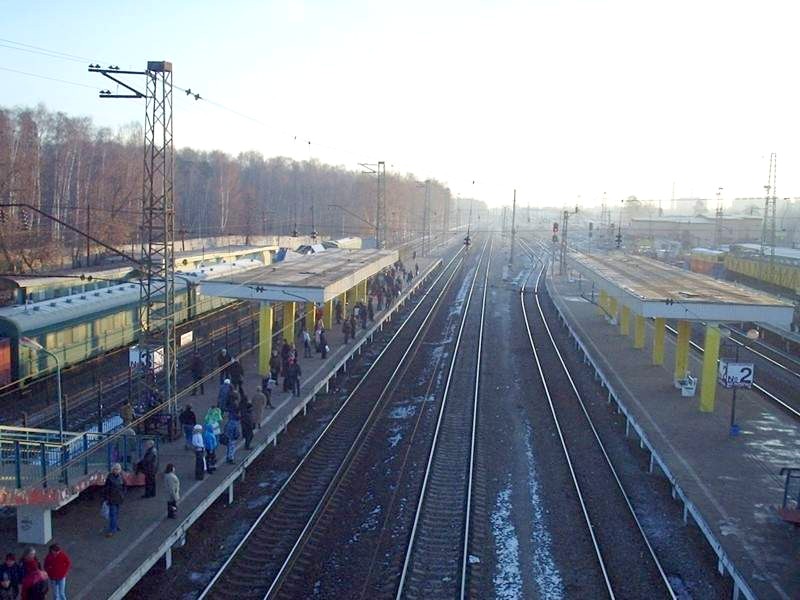 Станция Железнодорожная. Вид с «восточного» (внутреннего) переходного моста в западном направлении.