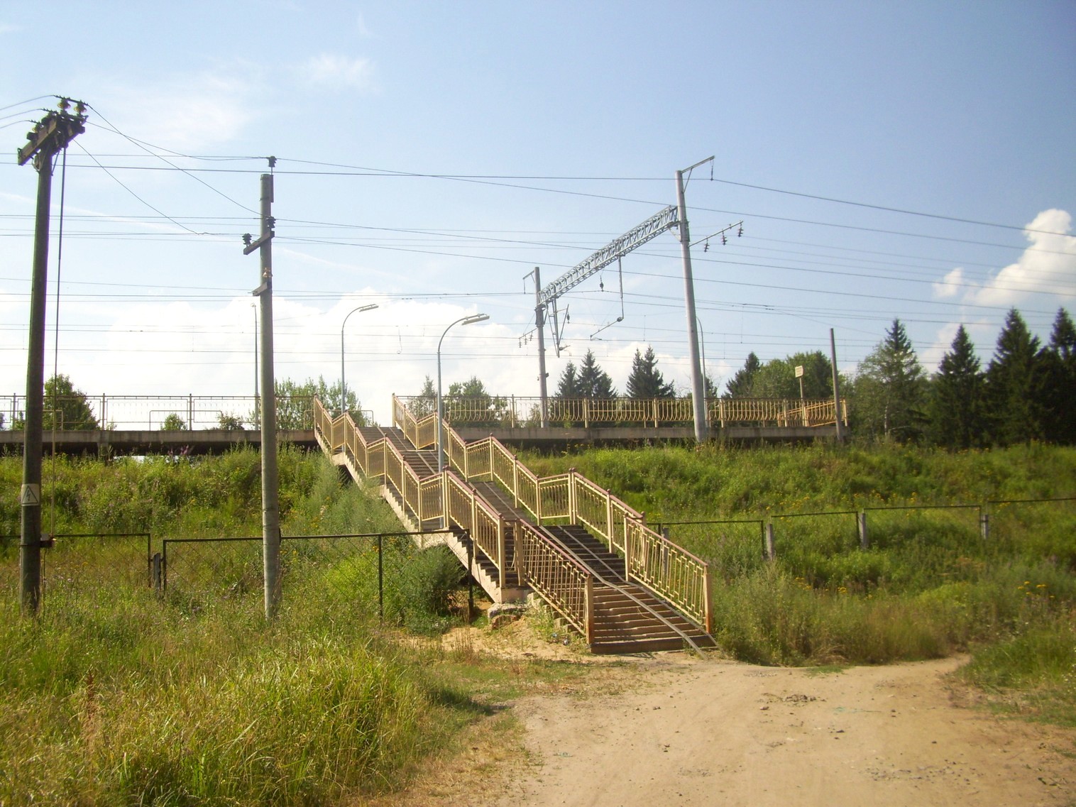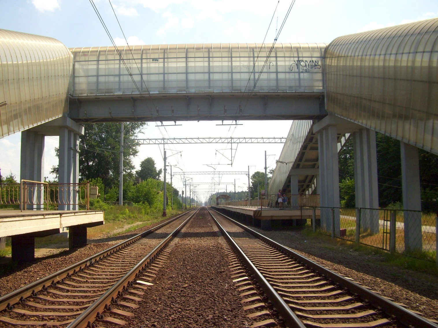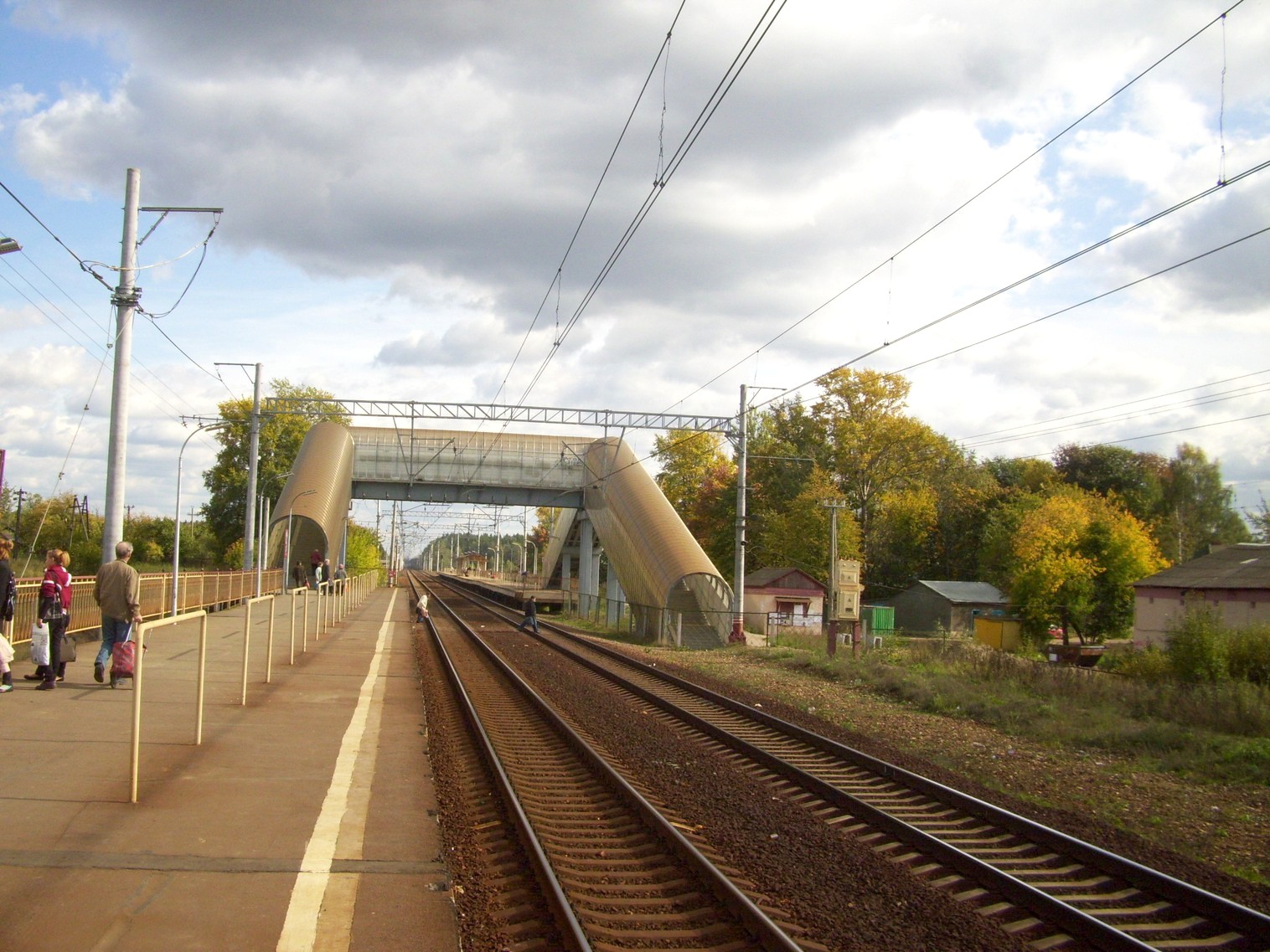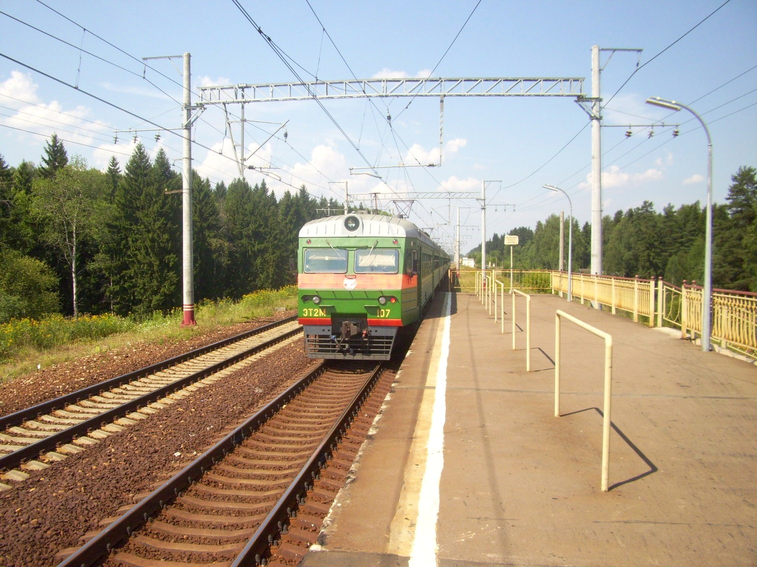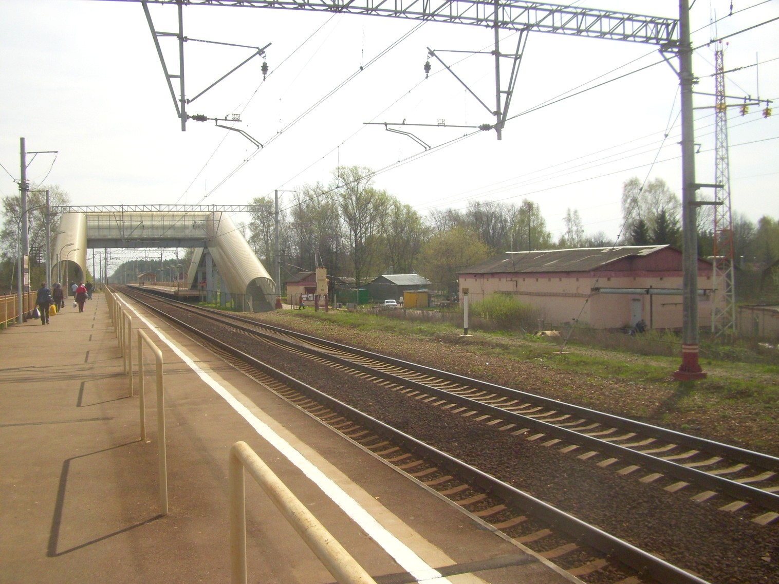 Платформа №2 (направление движения Москва — Тверь). Вид в южном направлении. Пешеходный мост.