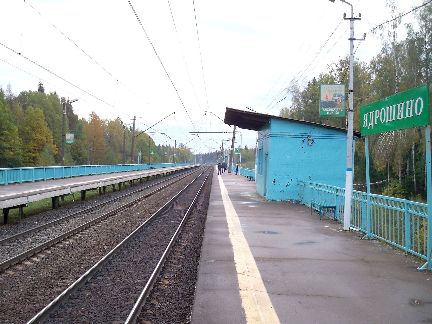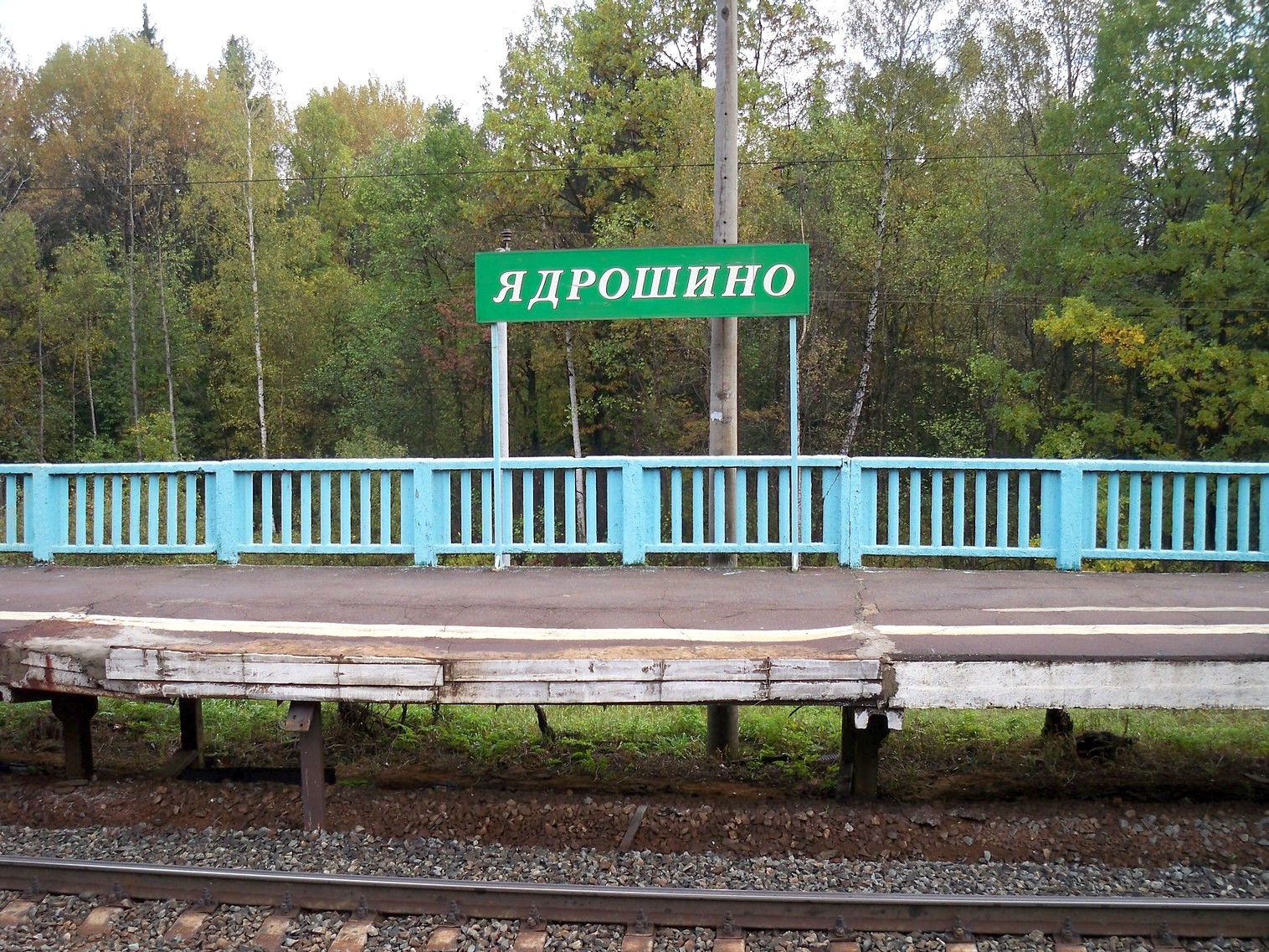 Вид с платформы №2 на платформу №1. Табличка с названием.