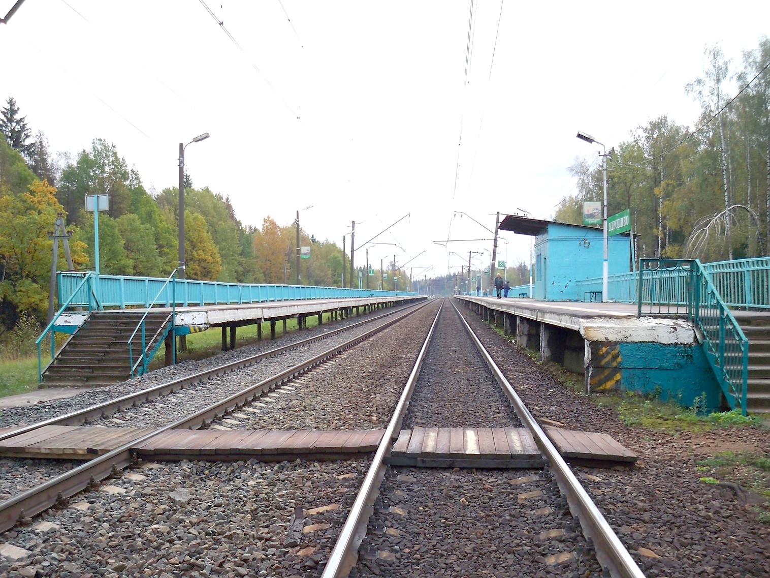 К востоку от платформ. Вид на запад. Справа — платформа №1 (направление движения из Москвы),
