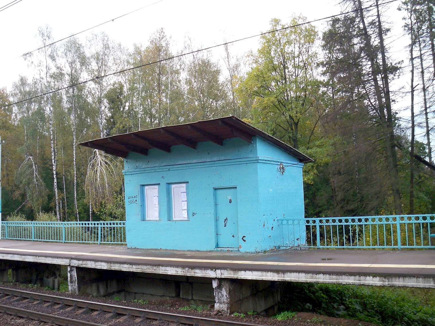 Платформа №2 (направление движения на Москву). Вид на запад. Строение на платформе