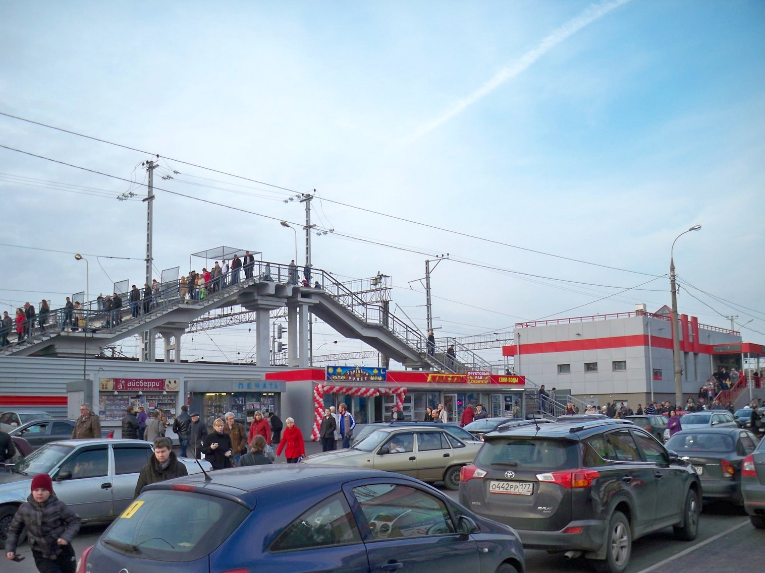 Вид из города на станцию Солнечная. Новый турникетный павильон, построенный