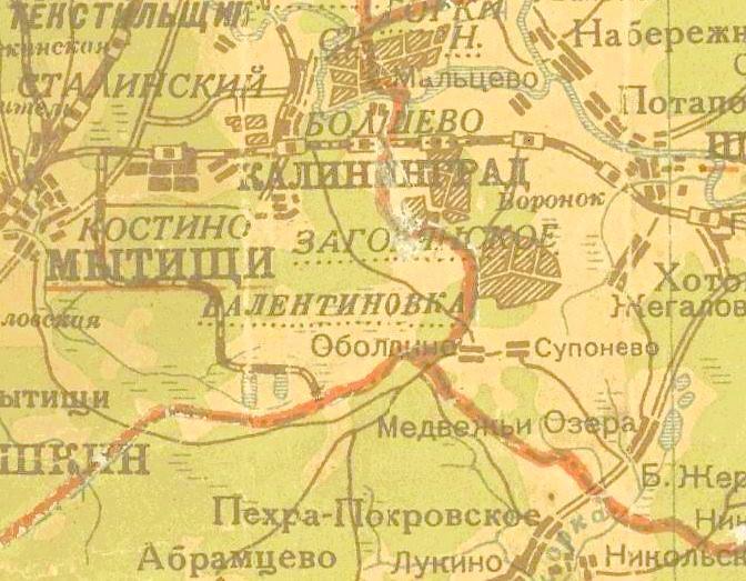 на карте Московской области масштаба 1:300 000, изданной в 1939 году.