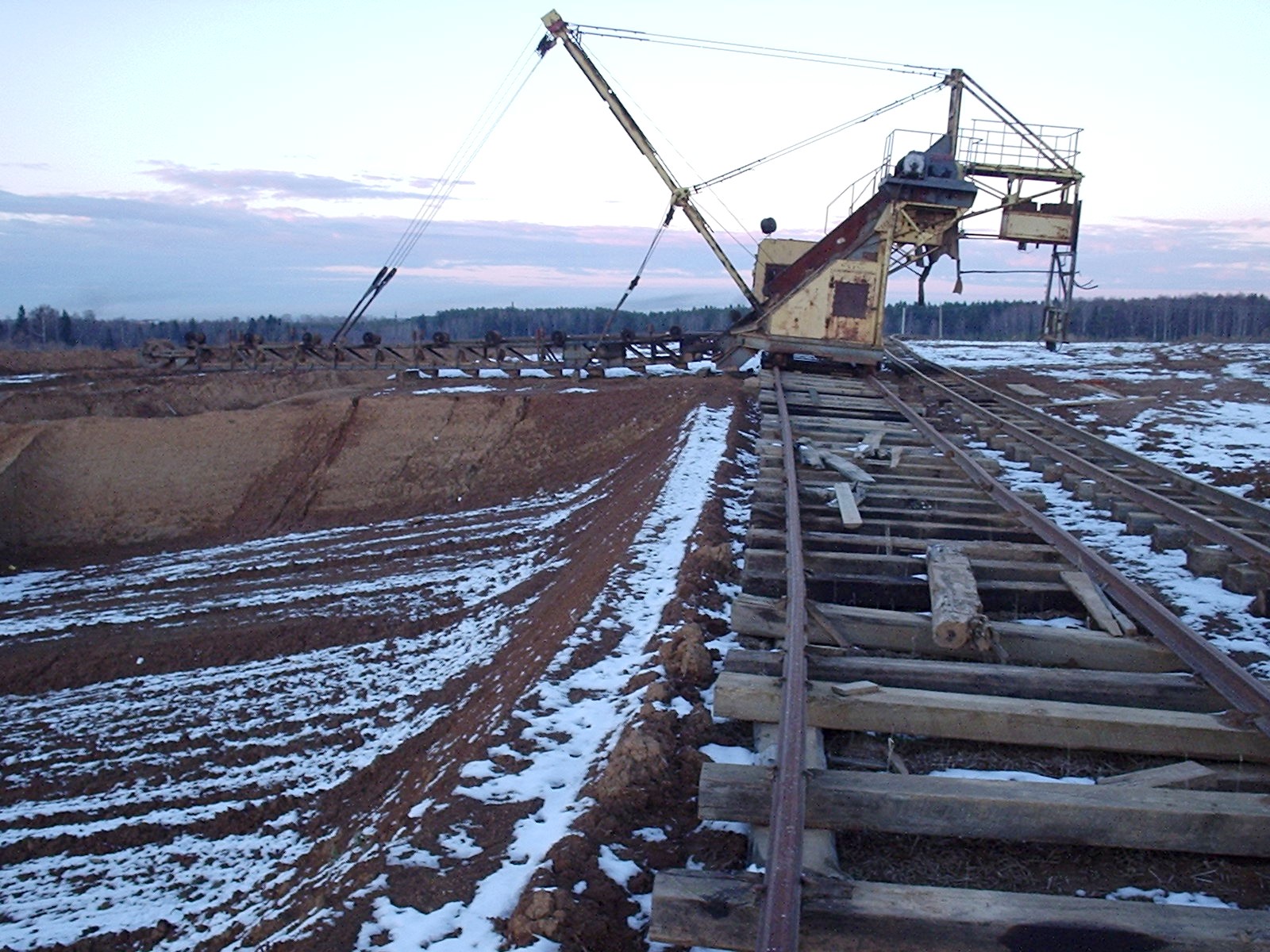 Впереди — глиняный карьер, расположенный севернее населённого пункта Пагубино. Справа от узкоколейной железной